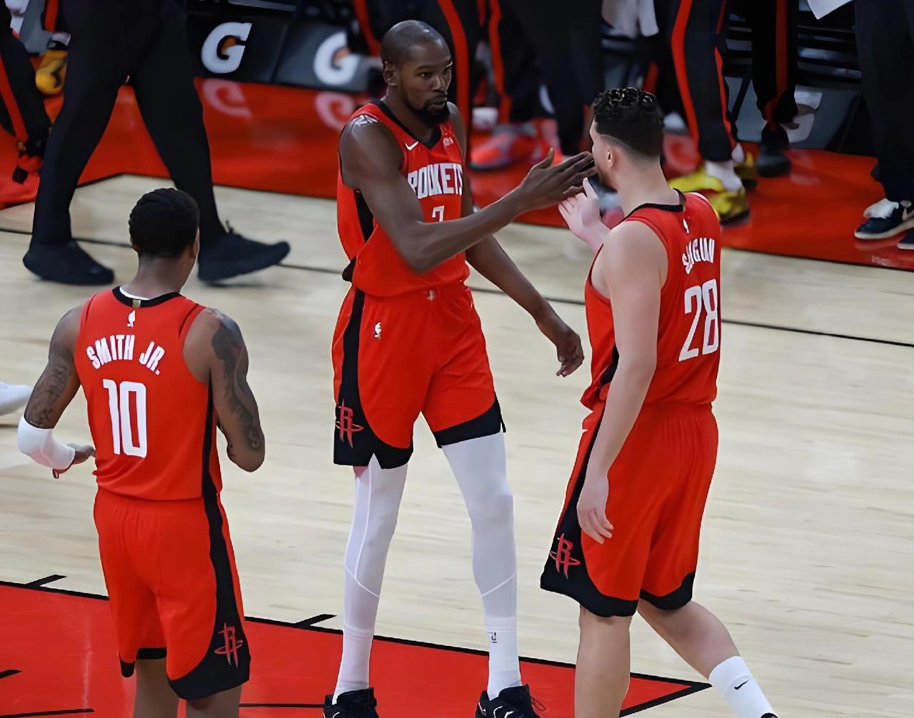 险胜藏大雷!火箭再这么打,下半场必崩! 半场54:53险胜尼克斯,首节21:27挖大坑,攻防战术全拉胯! 球全粘在杜兰特手里,被包夹针对,进攻直接卡死;申京防守只伸手,失误连连,杜申一拿球就停滞,节奏慢成蜗牛! 第二节33:26终于回暖,两人减少持球单打,球队瞬间流畅! 半场数据: 杜兰特13分1失误,申京13分4失误,史密斯4投4中轰11分 尼克斯:阿努诺比16分、唐斯11分 火箭篮板占优,抢断、失误被完爆! 下半场死命令:少失误、少杜申持球单打! 照第二节打,才能赢球! 休斯顿火箭