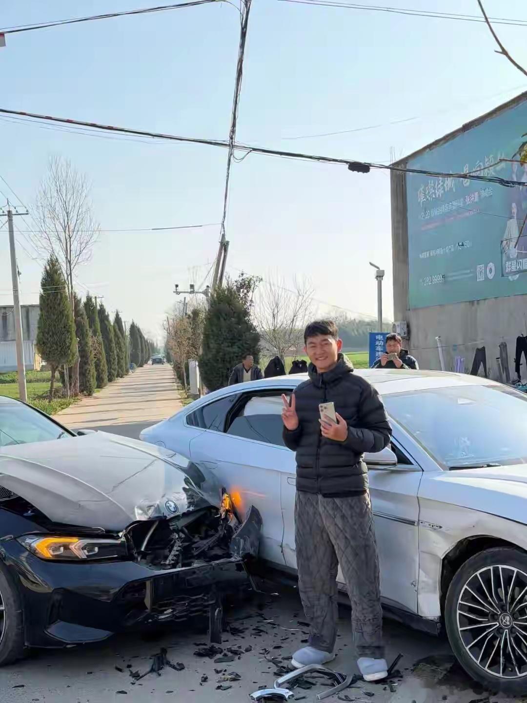 小伙撞毁刚还清车贷的宝马微笑合影报废不至于,目测前大灯,保险杠,进气格栅,前端框架,机盖,翼子板,前风挡,主副驾气囊等定损不会低于10W,修好残值也大打折扣