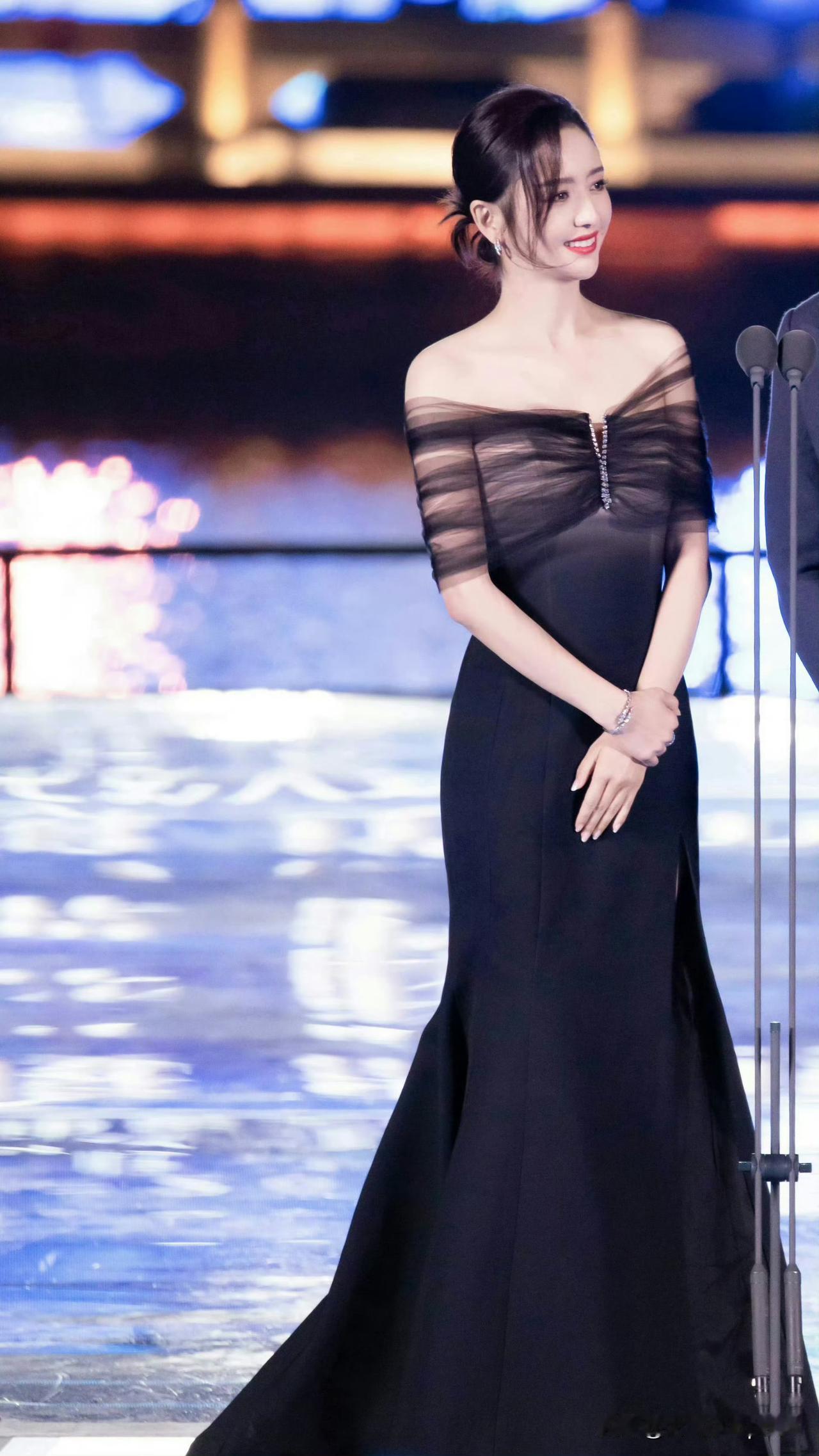 丫丫这套黑色礼服真的太美啦! 高开叉设计完美展现大长腿,身材比例简直无敌。 最妙的是裙身上那层黑纱,中间那条钻石装饰像拉链一样,blingbling的钻饰真的很出彩,又性感又高级。 黑色衬得她皮肤特别白皙,整个人的气质又冷艳又优雅,真是美得让人挪不开眼!