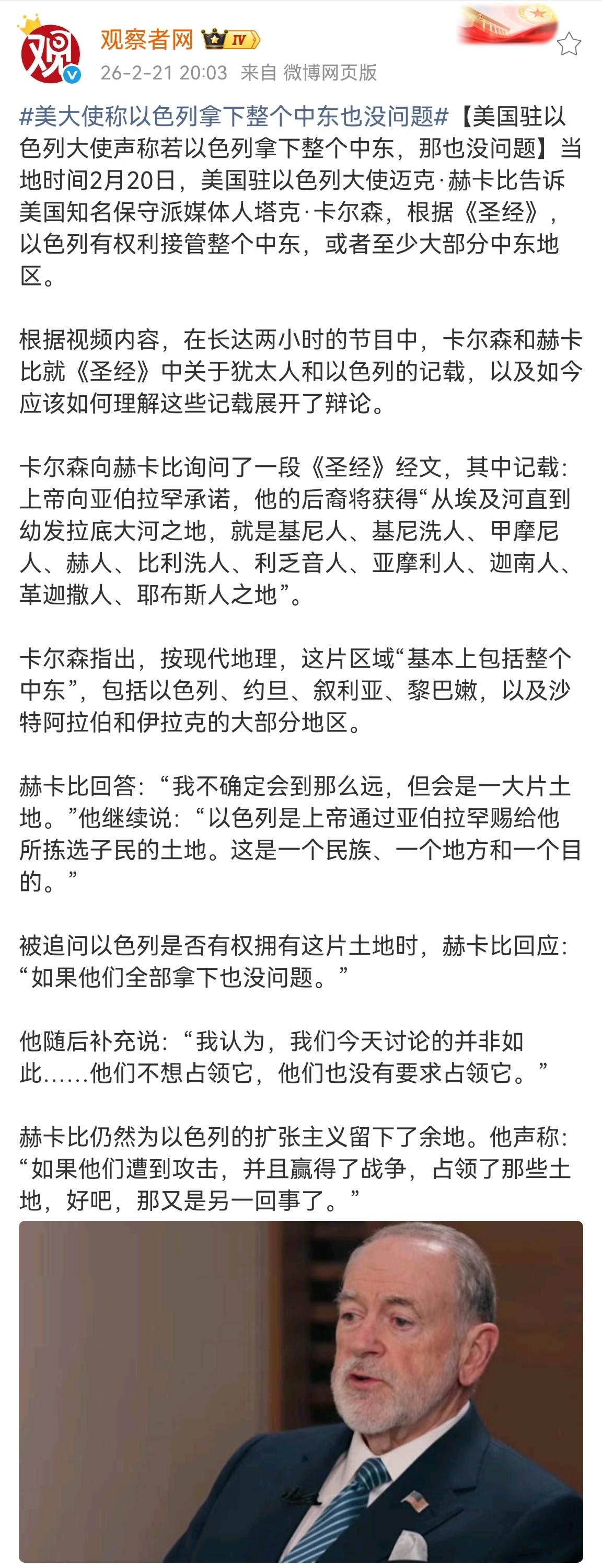 当2月20日美大使说出“若以色列拿下整个中东地区那也没有问题”时,自认为是美在中东地区的众多盟友都震惊了。 更让这群盟友感到无语的是,美大使的依据是对《圣经》里一段记载的理解。 现在已经有约旦等国表达不满。 看看,即使中东地区这群国家极力讨好美国但从目前情况来看,在老美心中他们在此地区里唯一认可的盟友可能只有一个国家。