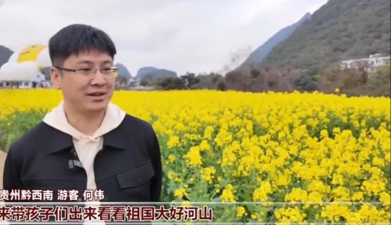 2026马年新春,贵州黔西南春意盎然。万亩油菜花田铺展成金色海洋,游客带孩子畅游其间,饱览祖国大好河山。世界级大桥横跨崇山峻岭,天堑变通途。传统村寨红灯高挂,烟火气与自然美景交融,绘就新春绝美画卷。