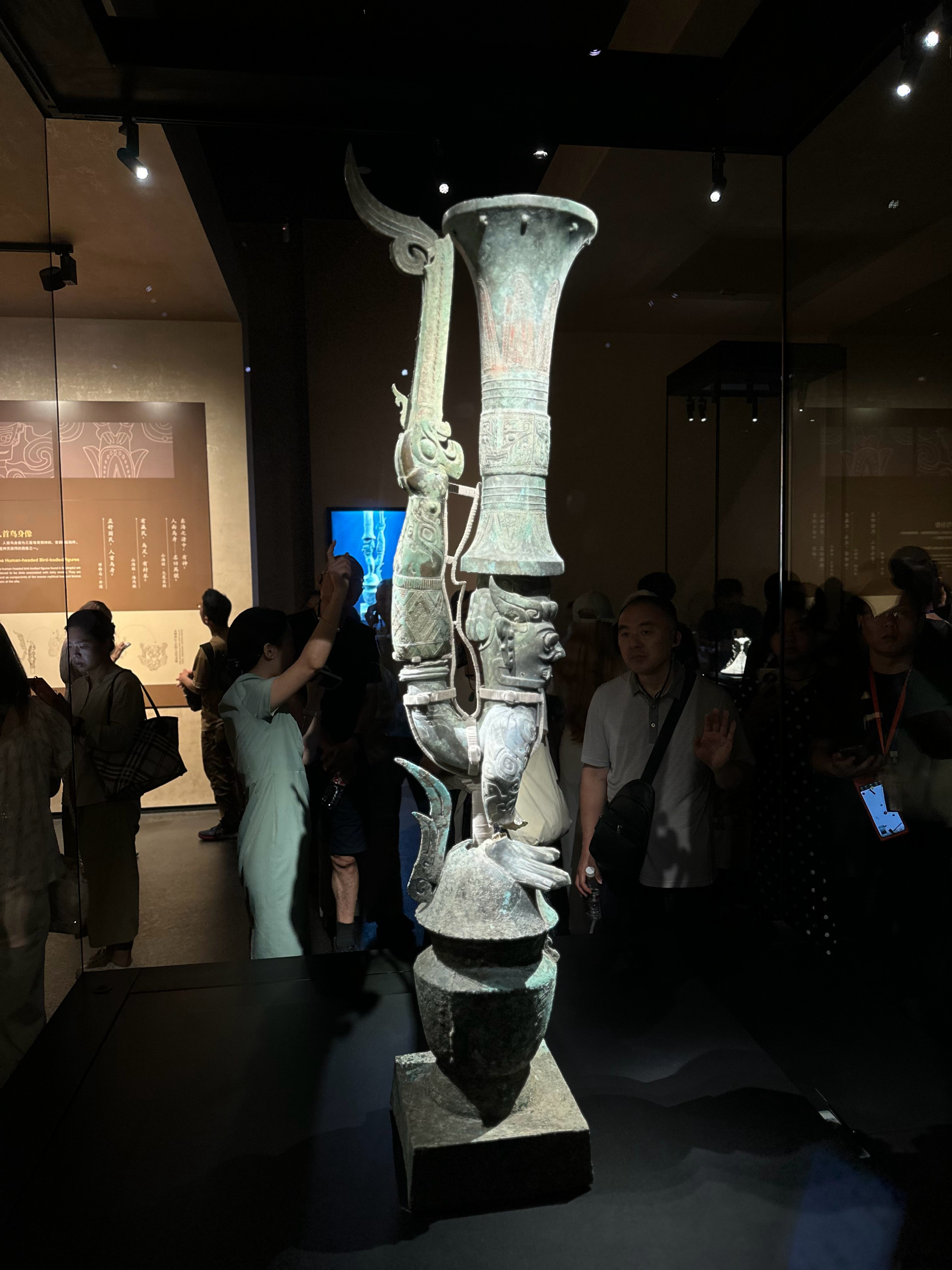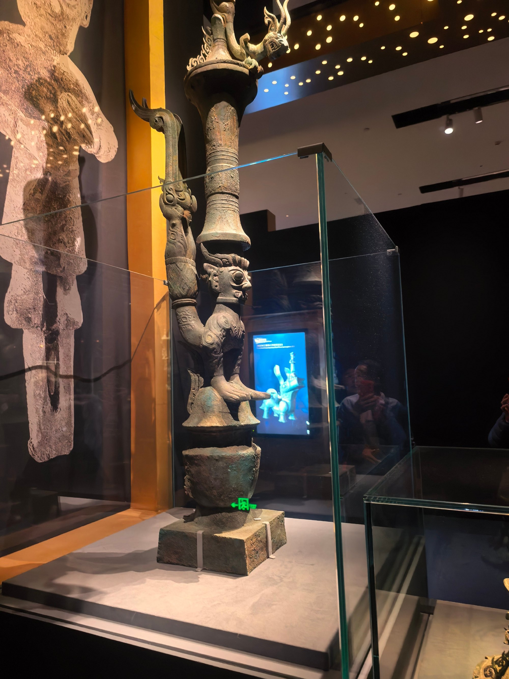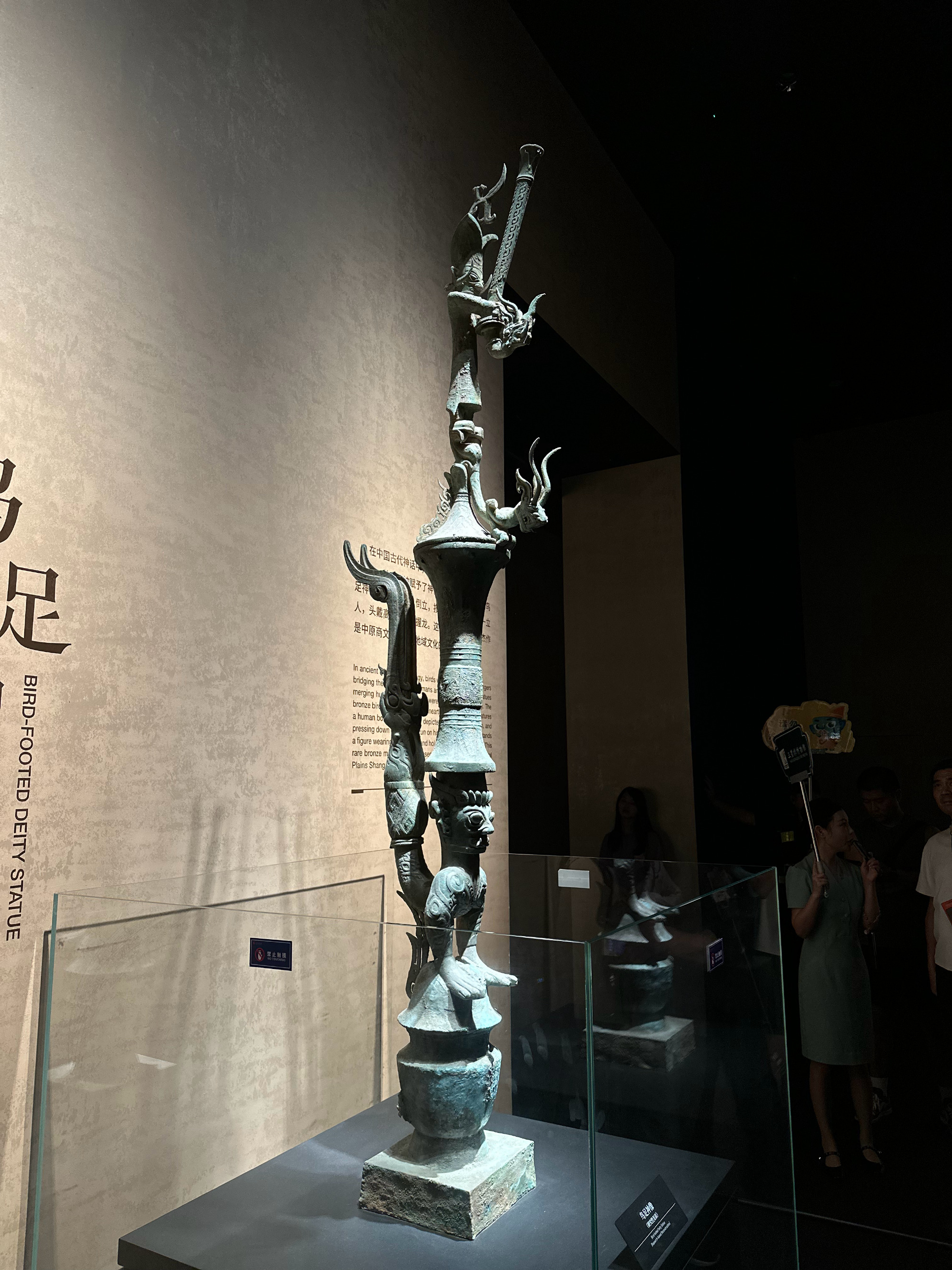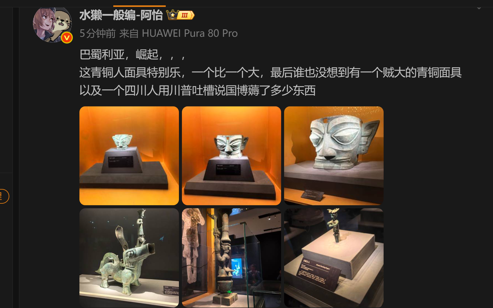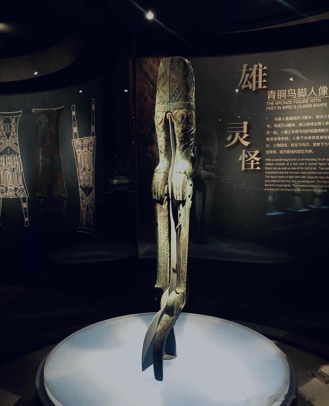 🔻王诗怡图1中的第五张、图2就是三星堆之前著名的“鸟足神像”。🔻尾巴部分先出土,以图3、4这样的姿态在老馆摆了几十年。🔻结果八号坑发掘直播时找到了剩余部分,才意识到图3、4上下摆反了。 神像的jio是向上翘高高的。🔻这谁想得到啊?🔻所以有了现在的图1、图2、图5、图6🔻也到国博出差了吗?