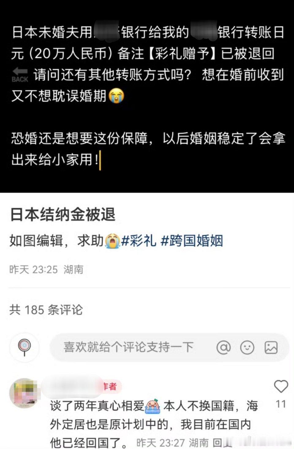 大额转账备注赠予被日本退回了