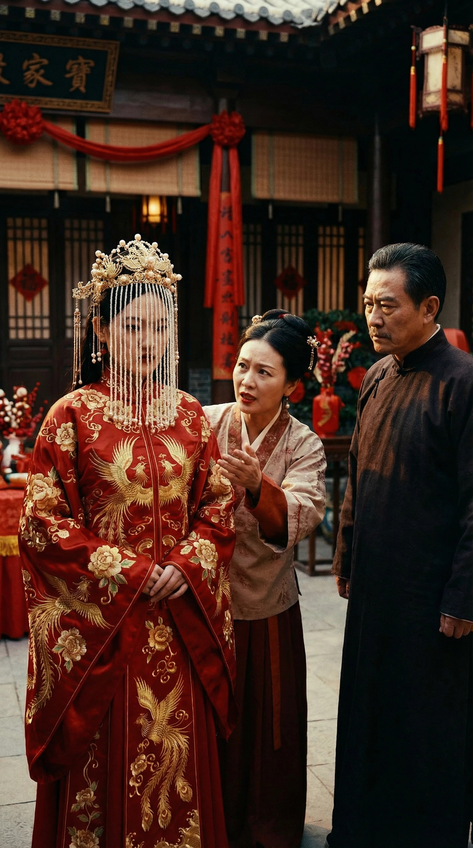 红帖、礼单、聘书、银两。摆好,又重摆。像在练习一场未来。