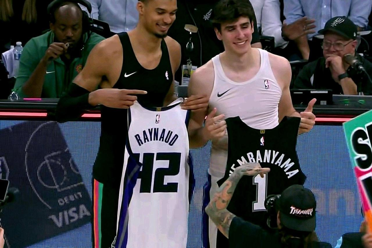 卫冕冠军雷霆彻底慌了:西部第一宝座恐将易主?马刺豪取8连胜!同时送国王耻辱16连败!马刺也成为nba联盟第三支取得40胜的球队,如今和雷霆的差距就剩2.5个胜场差距了,考虑到卫冕冠军雷霆严重的伤病因素,马刺本赛季完全有可能冲击西部第一的宝座! 数据不会说谎:我忍不住要狂赞外星人文班亚马,狂砍28分15篮板6助攻4封盖,投篮11/20,三分1/5,罚球5/7,正负值达到恐怖的32+,太全面了,再次统治内线!文班亚马堪称马刺赢球的最大的功臣!赛后和自己的国家队友雷诺互换球衣!本赛季马刺可谓是联盟最炙手可热的球队,没有之一! 马刺 马刺队