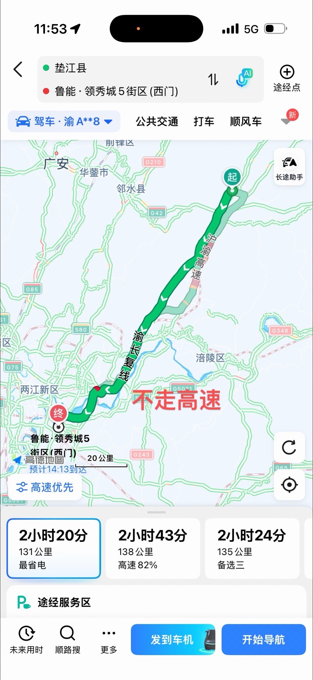 出门不喜欢堵车,国道又太久,选了半天分成两段走,感觉好多了。