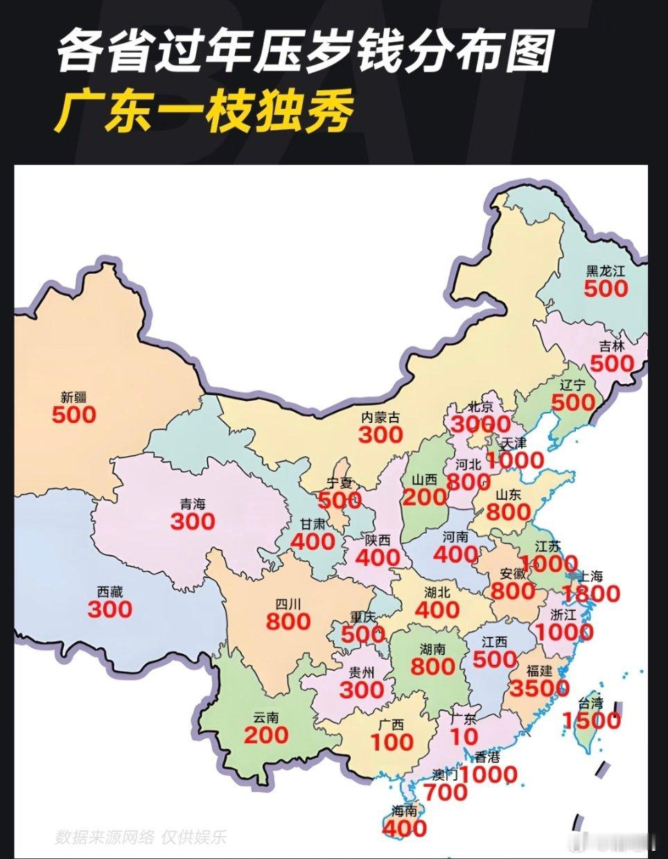 全国各省平均过年压岁钱多少钱?2026年全国各省的过年压岁钱分布图前三名分别是:8福建3500北京3000上海1800广东10退!!!!你没看错,不愧是一枝独秀。来说说,你们那儿过年压岁钱包多少~
