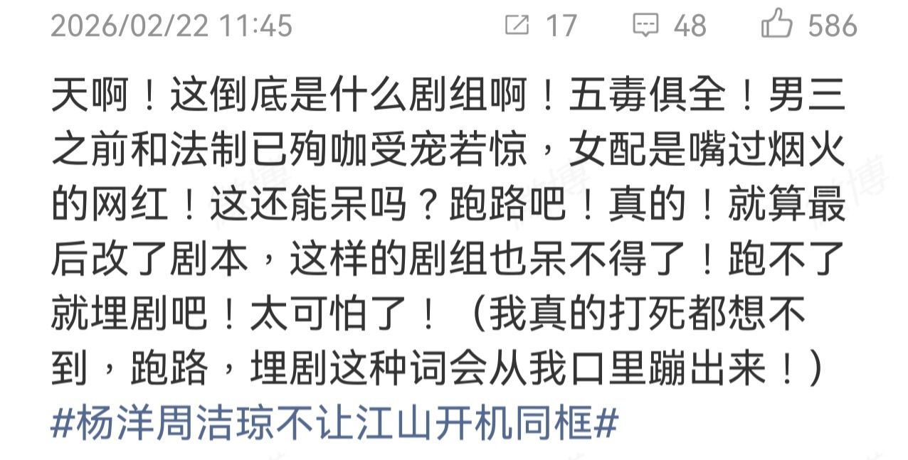 杨洋不让江山初六开机,横店垄断应援的官方自己发的视频说的最大排面。哈哈哈,之前呃