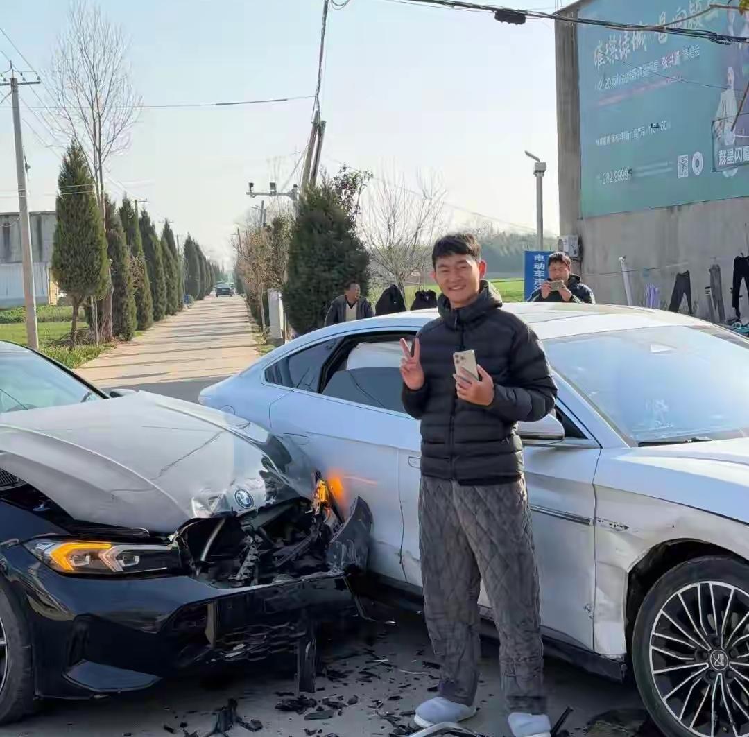 安徽阜阳一小伙子春节期间驾驶自己的宝马车辆送亲友到火车站返程,回来的时候一辆比亚迪发生碰撞。车身多处受损,当时小伙子还是很心疼的,因为就在前一个月,这辆宝马车才刚还清车贷,如今这辆车几乎接近了报废。但是他很快收拾了心情,微笑着与被撞车辆,合影,表示没事就好。网友们觉得如果有保险的话,那问题还不大。