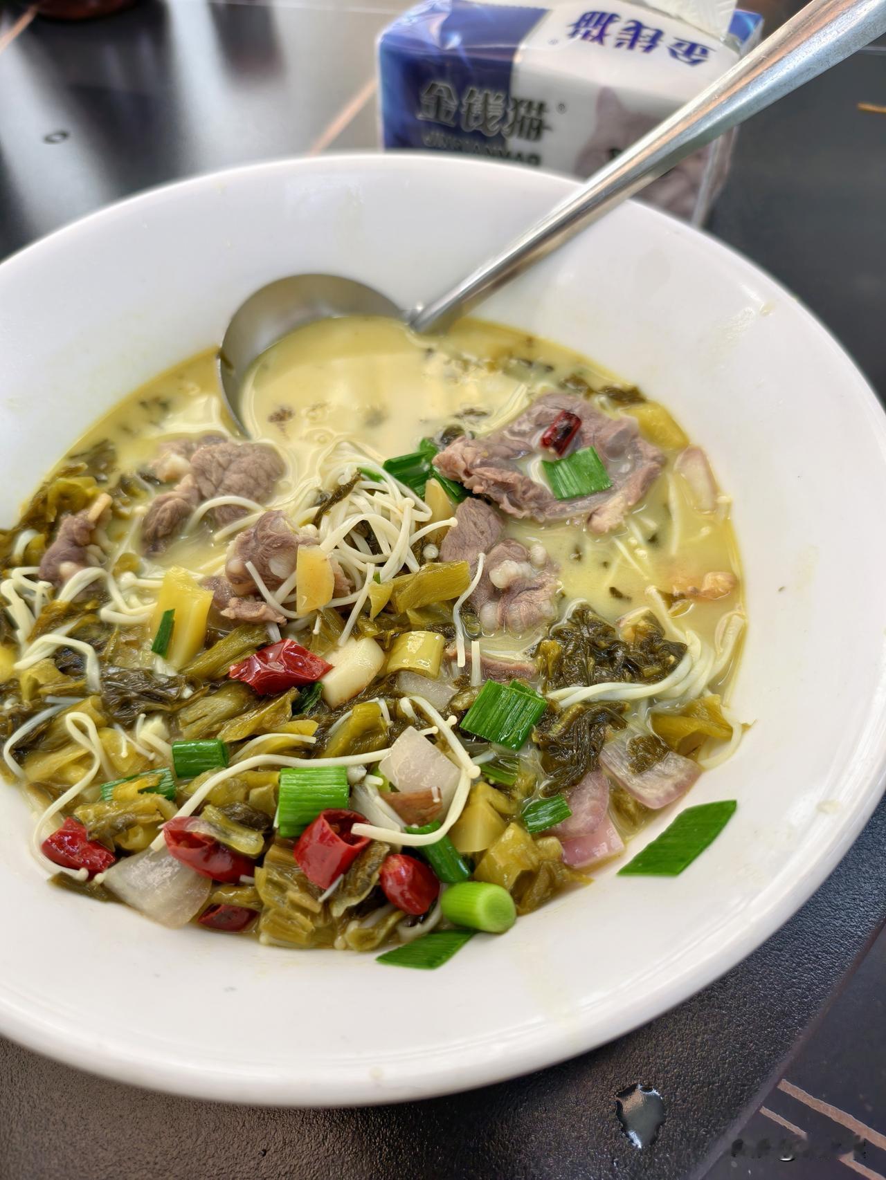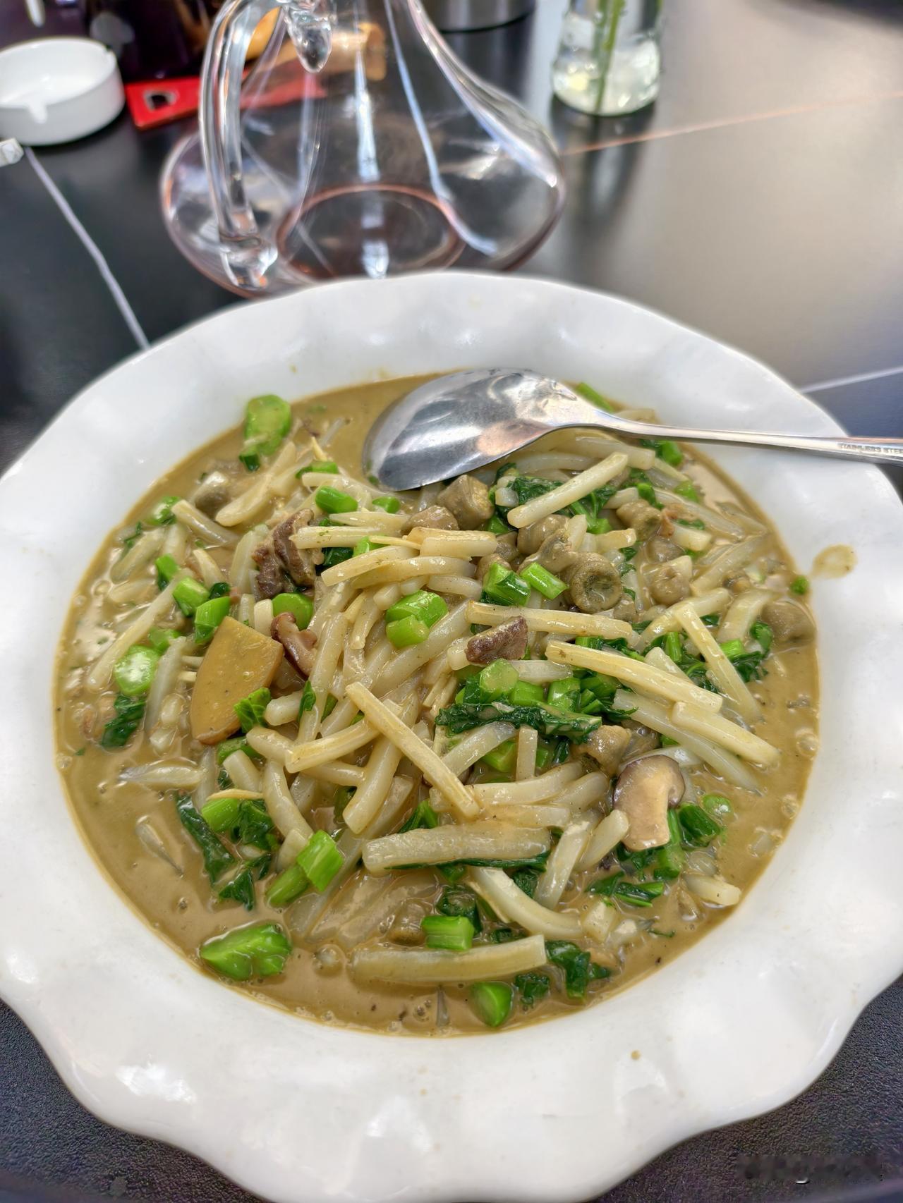 台州很多东西还沿用大几百年前的古称,所以叫面不叫粉,豆面我们一般称为绿豆面,是不是真用绿豆粉做的就不清楚了,沙蒜就是海葵,这种汤口感很鲜,算是地方特色菜之一
