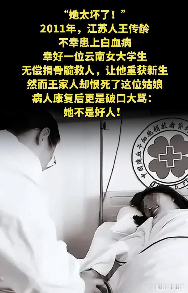 "她太坏了!"2011年,江苏人王传龄不幸患上白血病,幸好一位姑娘捐献骨髓,让他重获新生。然而王家人却恨死了这位姑娘。 那会儿王传龄就是家里的顶梁柱,上有老下有小,查出白血病直接把全家拖进深渊。亲戚朋友全做了配型,没一个能对上,全家天天以泪洗面,就等着熬日子。 就在绝望到头的时候,中华骨髓库传来消息,云南一位叫李春玲的姑娘配型全合!这可是万里挑一的概率,王家当场就哭了,觉得老天爷终于开眼了。 李春玲是个医学生,早就主动加入骨髓库,一听能救人,二话不说就同意捐献,全程没提过钱,没要过任何回报,还一次次配合医院抽血、体检,就等着手术那天。 谁也没料到,致命的意外卡在了手术环节。王传龄先做了清髓手术,体内的坏细胞和好细胞全被清干净,说白了就是没了免疫力,必须在48小时内输进新的造血干细胞,不然必死无疑。 另一边,李春玲躺在采集床上,机器刚运转没多久突然故障,只采集到一半的混悬液就被迫停了。医生一看姑娘的身体指标撑不住,只能紧急终止手术,这真不是她故意反悔! 王家那边只知道骨髓没按时足量送来,以为姑娘临阵退缩,眼睁睁看着王传龄在病床上奄奄一息,那种从天堂摔进地狱的绝望,直接变成了咬牙切齿的恨,逢人就说姑娘太坏、见死不救。 万幸的是,这一半的造血干细胞居然起了作用,王传龄奇迹般挺了过来,慢慢康复。可误会一直没解开,王家始终记恨着这位救命恩人。 其实从头到尾,姑娘没做错半分,善意被机器故障蒙上阴影,救命之恩反倒成了怨仇。这世上最寒心的,从来不是苦难本身,而是善意不被理解,好心反被错怪。 各位读者你们怎么看?欢迎在评论区讨论。