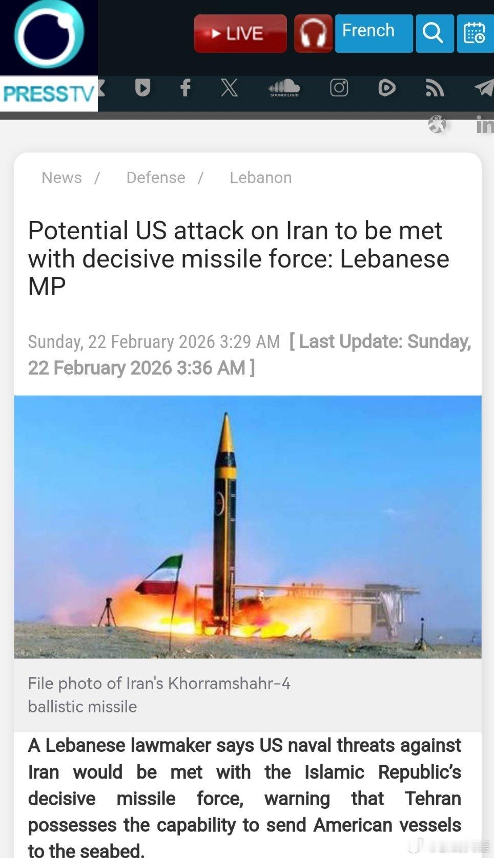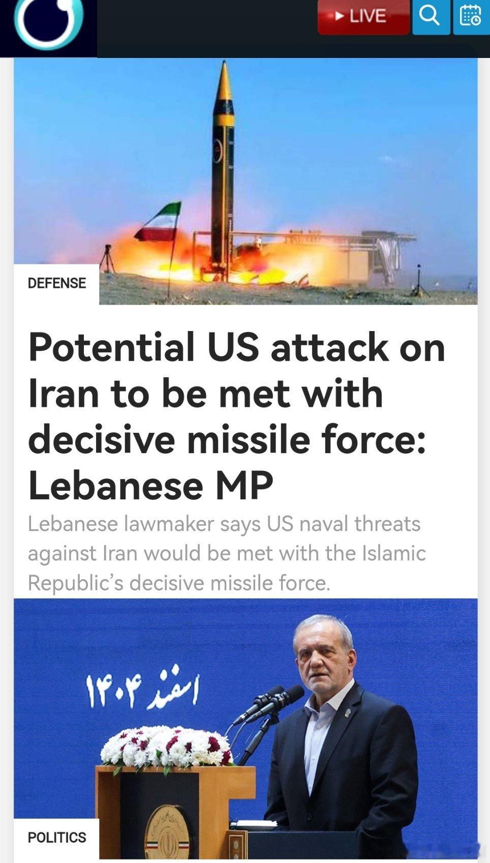 黎巴嫩议员:美国若对伊朗发动袭击,伊朗将用导弹予以坚决回击