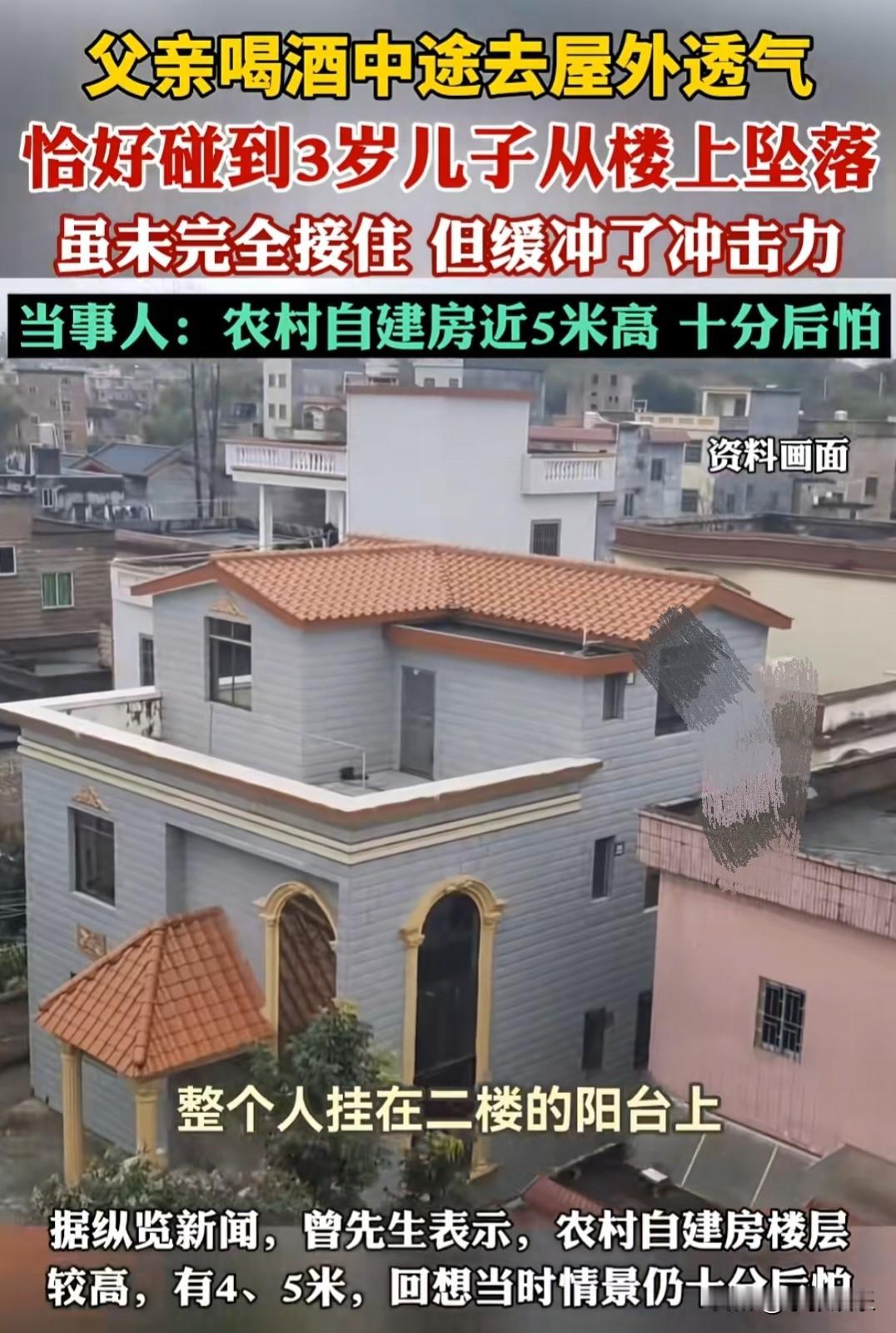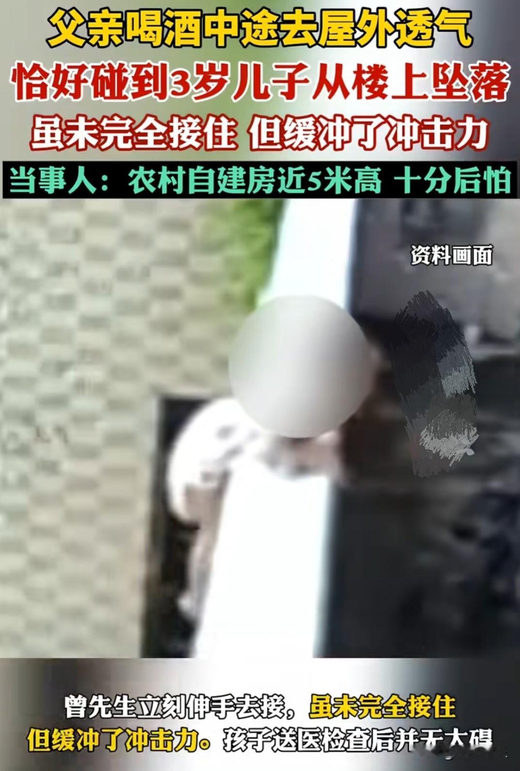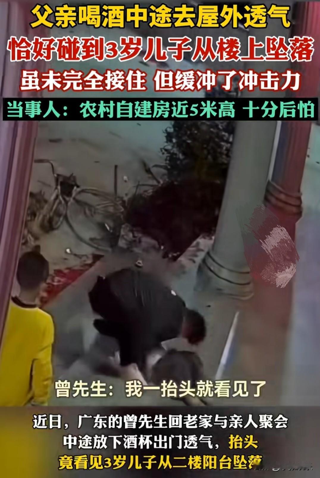 “太惊险了”父亲去阳台透气的这一分钟,差点成了他这辈子最后悔的一分钟。 监控画面里,男人刚从屋里走到阳台。他也许只是觉得闷,想出来抽根烟、看看远方。他手搭在栏杆上,背对着屋内,完全不知道身后正发生什么。 就在他站定的几秒后,镜头右上角,一个身影从楼上坠落。 速度快得惊人——先是擦过阳台外的管道,然后径直砸向一楼地面。而那个父亲,就站在几米外的阳台上,背对着,浑然不觉。 等听到声音再转身时,已经来不及了。他本能地往前冲了一步,伸出手想够什么,但那道身影早已从视线里消失。他愣在那里,手悬在半空,整个人像被定住了一样。 紧接着,他转身就往屋里跑。那一瞬间的表情——震惊、恐惧、不敢相信——隔着模糊的监控都能感受到。 他出来透气的那一分钟,以为只是换口气,却差点换来了人生的天塌地陷。 我们总说“意外”这个词,但真正的意外从来不打招呼。就是那一转身、那一低头、那几秒钟的错过,可能就让你和最重要的人擦肩而过。 这个父亲往后余生,大概再也不敢背对着屋里透气了。而我们能做的,除了感叹命运无常,更该检查一下家里的窗户、阳台,别让一次透气,变成一生的透不过气。