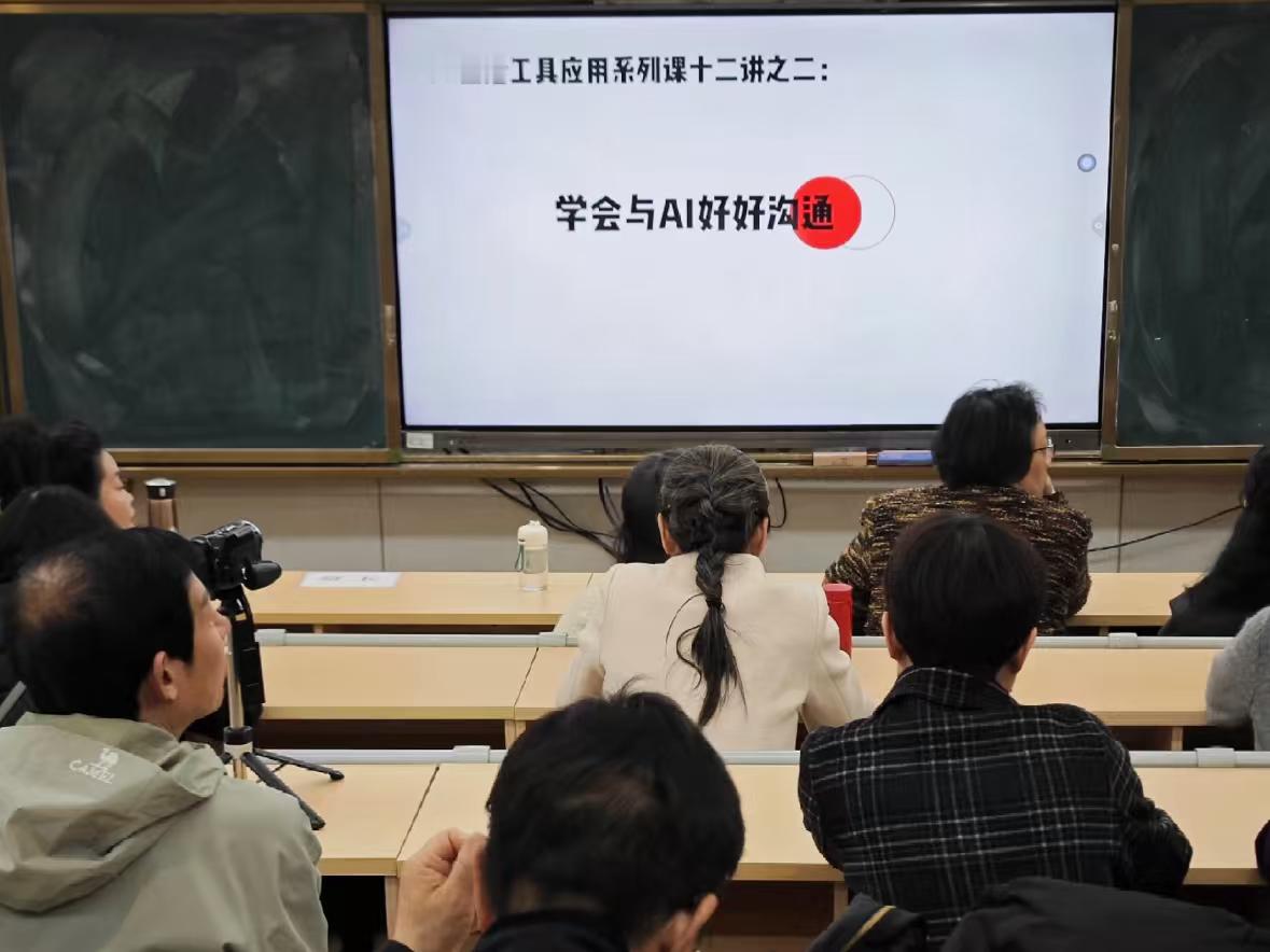 活动现场,实践队员们不仅为居民提供了电脑系统维护、软件故障排查等义诊服务,更针对老年人日常使用电脑的痛点,开展了“学会与AI好好沟通”主题科普课。课堂上,队员们用通俗易懂的语言讲解了AI工具的基础用法,从如何精准提问到如何利用AI解决生活中的实际问题,一步步引导老年居民跨越数字鸿沟。一位戴着鸭舌帽的老人在队员的指导下,专注地练习打字操作,脸上洋溢着掌握新技能的喜悦。