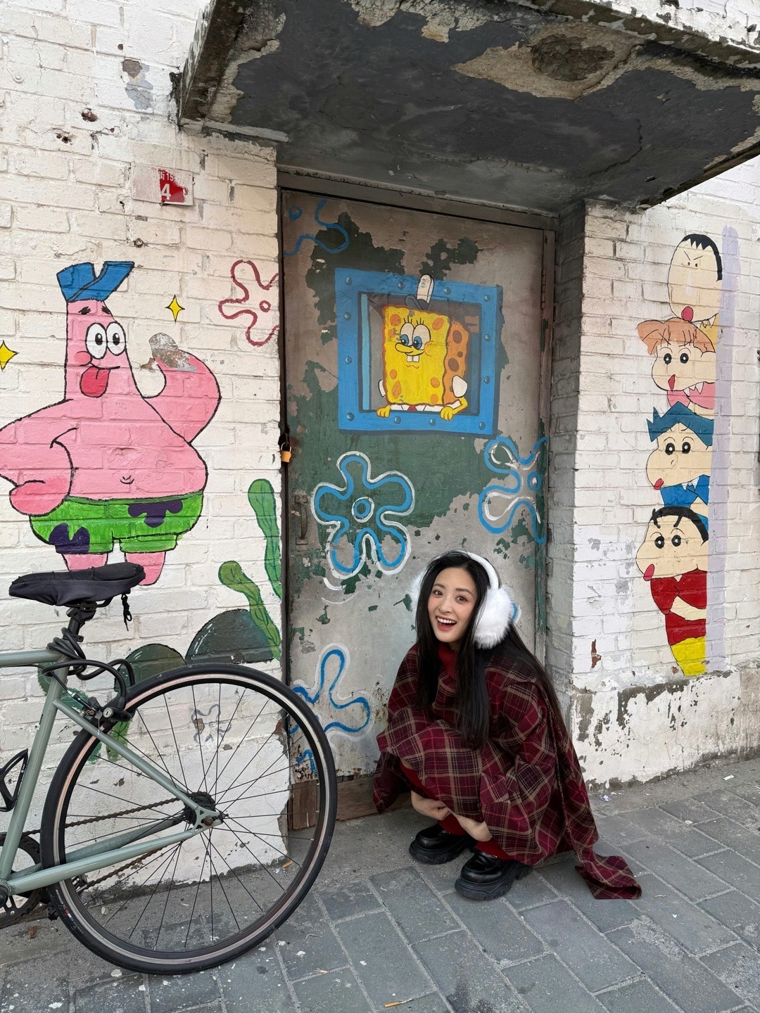 张天爱跟素人合影,胯真的好宽,大宅院似的