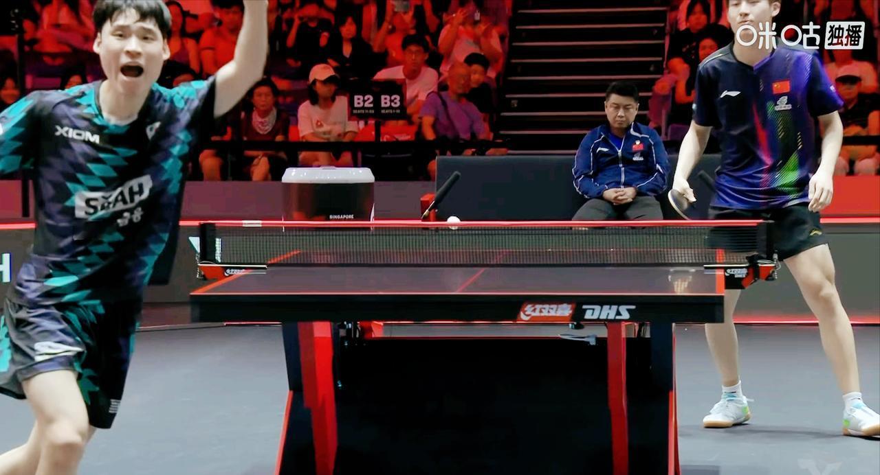 新加坡站首轮,温瑞博0:3被张禹珍零封,王皓情绪稳定。 侯英超气的够呛, 开局就说: 温瑞博战术错误, 连续给张禹珍正手。 小温正手虽然不错, 但是张禹珍搏杀打法更凶狠, 不和小温打相持, 前三板解决战斗。 把小温打懵了, 后面小温自己连续失误。 第三局 小温改打反手取得3:0开局 随后陷入频繁失误, 王浩都无奈了, 说:战术没问题,但是你失误太多了。 8:7关键球的时候小温又失误两个, 最终被张禹珍11:9拿下。
