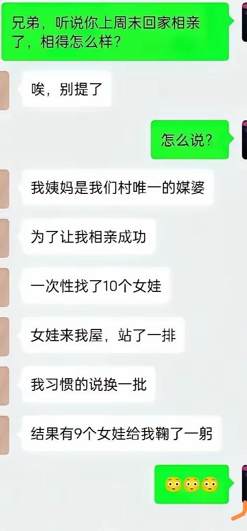 这个,小伙子看你也是熟客了,要不就找个熟的凑合一下过日子?好歹也是乡亲啊[滑稽笑]