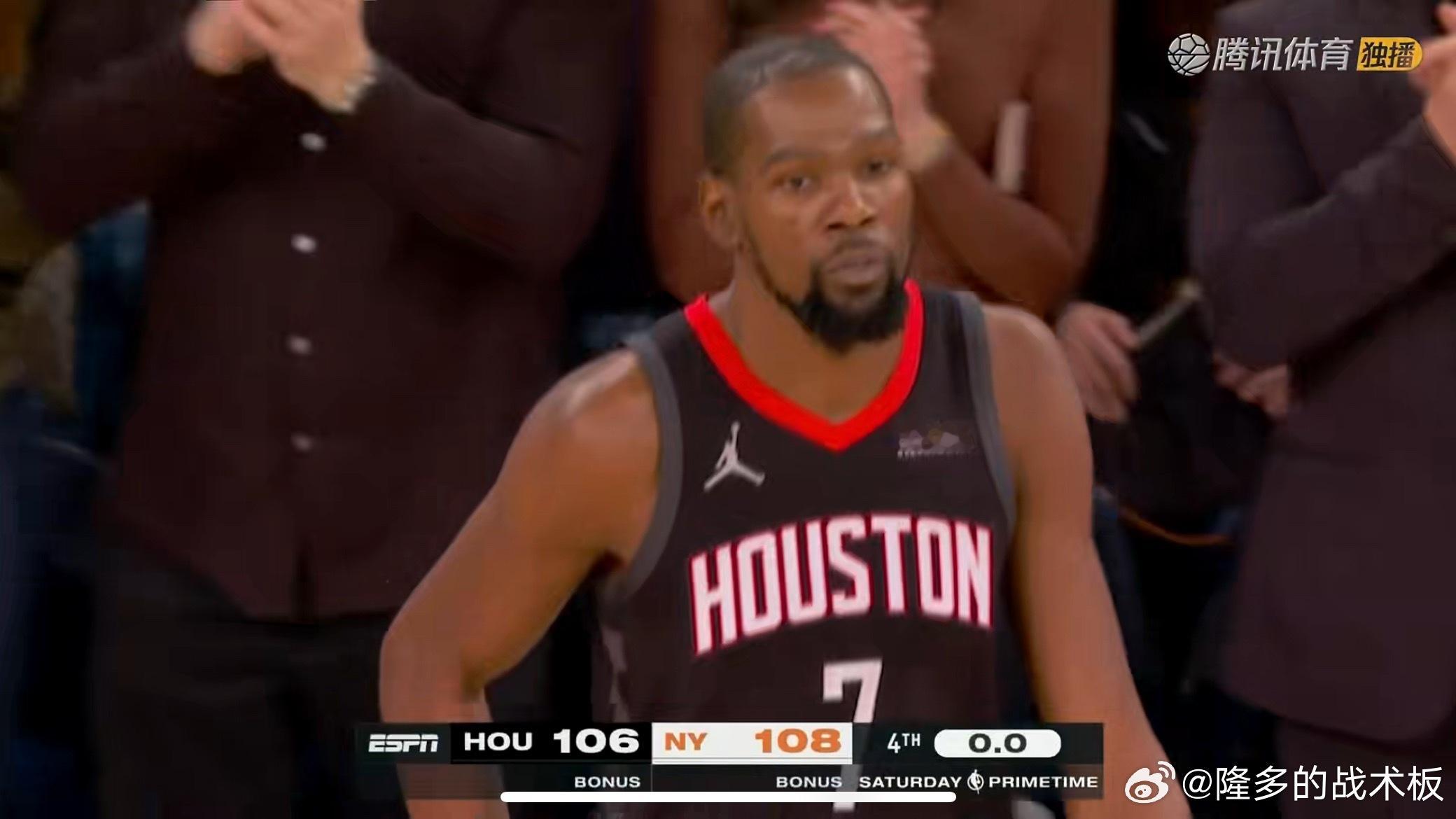 杜兰特30分,唐斯25分,布伦森20分,阿尔瓦拉多8分5抢断火箭vs尼克斯