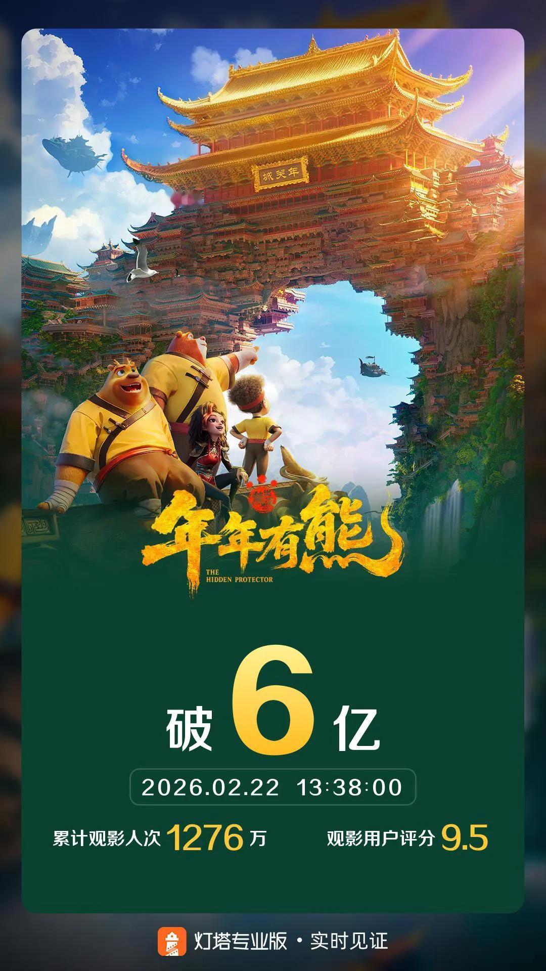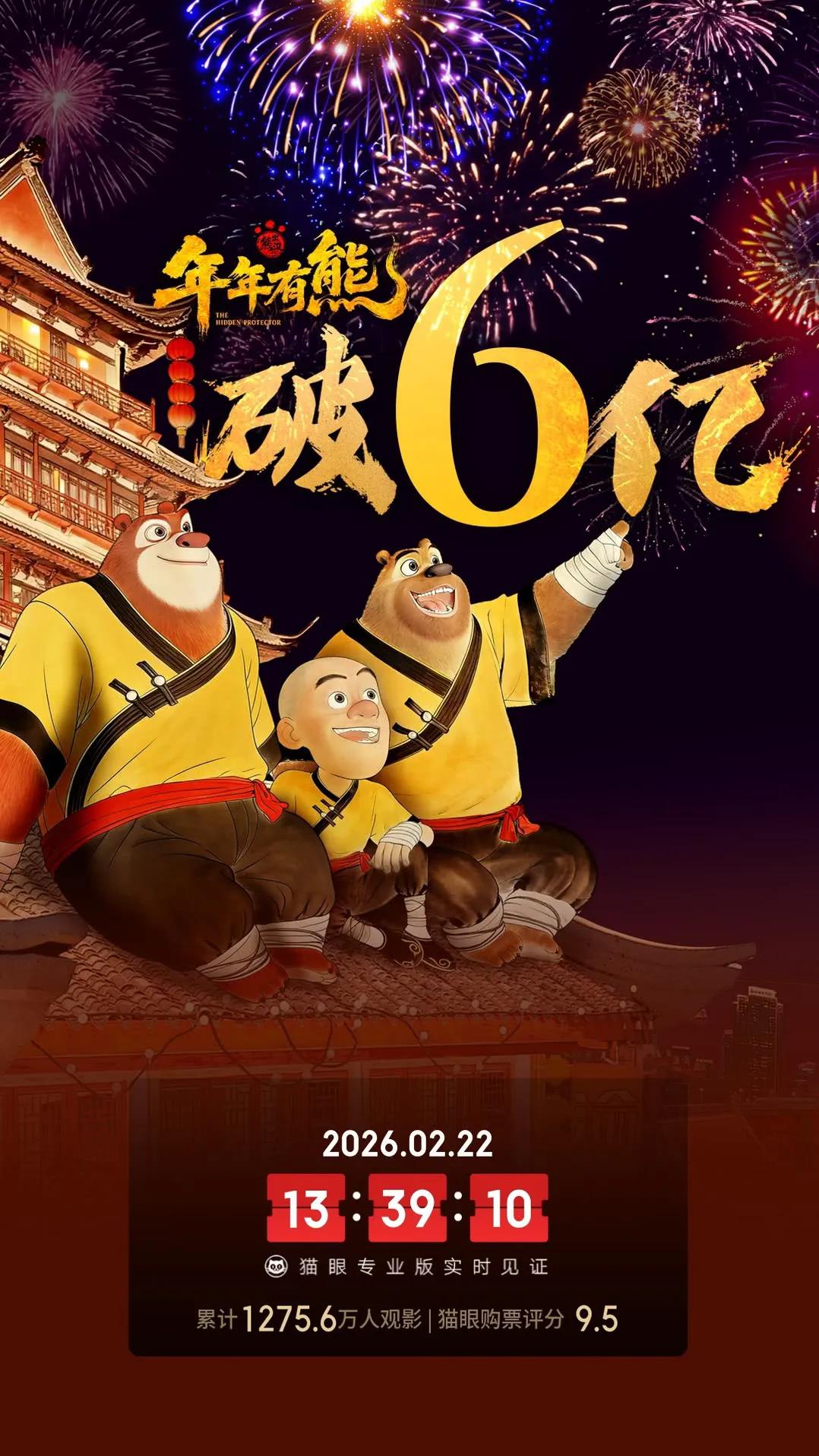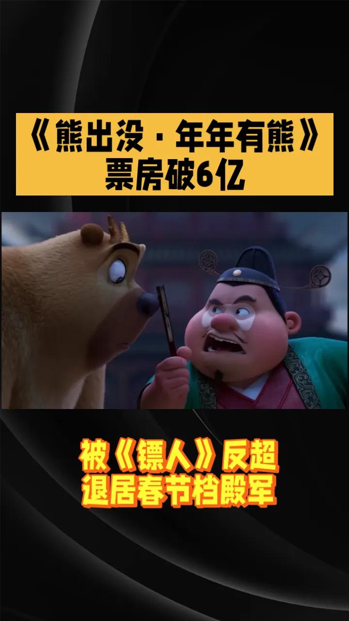 《熊出没·年年有熊》票房破6亿,退居春节档殿军 由方特领衔出品的2026春节档奇幻喜剧动画作品《熊出没·年年有熊》累计综合票房破6亿,是2026中国内地电影市场第4部达到这一成绩的电影。 虽然《熊出没·年年有熊》上座率一直不错,但排片占比却没什么变化,累计综合票房已被《镖人:风起大漠》反超,退居春节档殿军位置。后续假期结束,学生开学,《熊出没》的票房也会相应受到影响,排名方面已经很难再发生变化。电影熊出没年年有熊 春节档电影