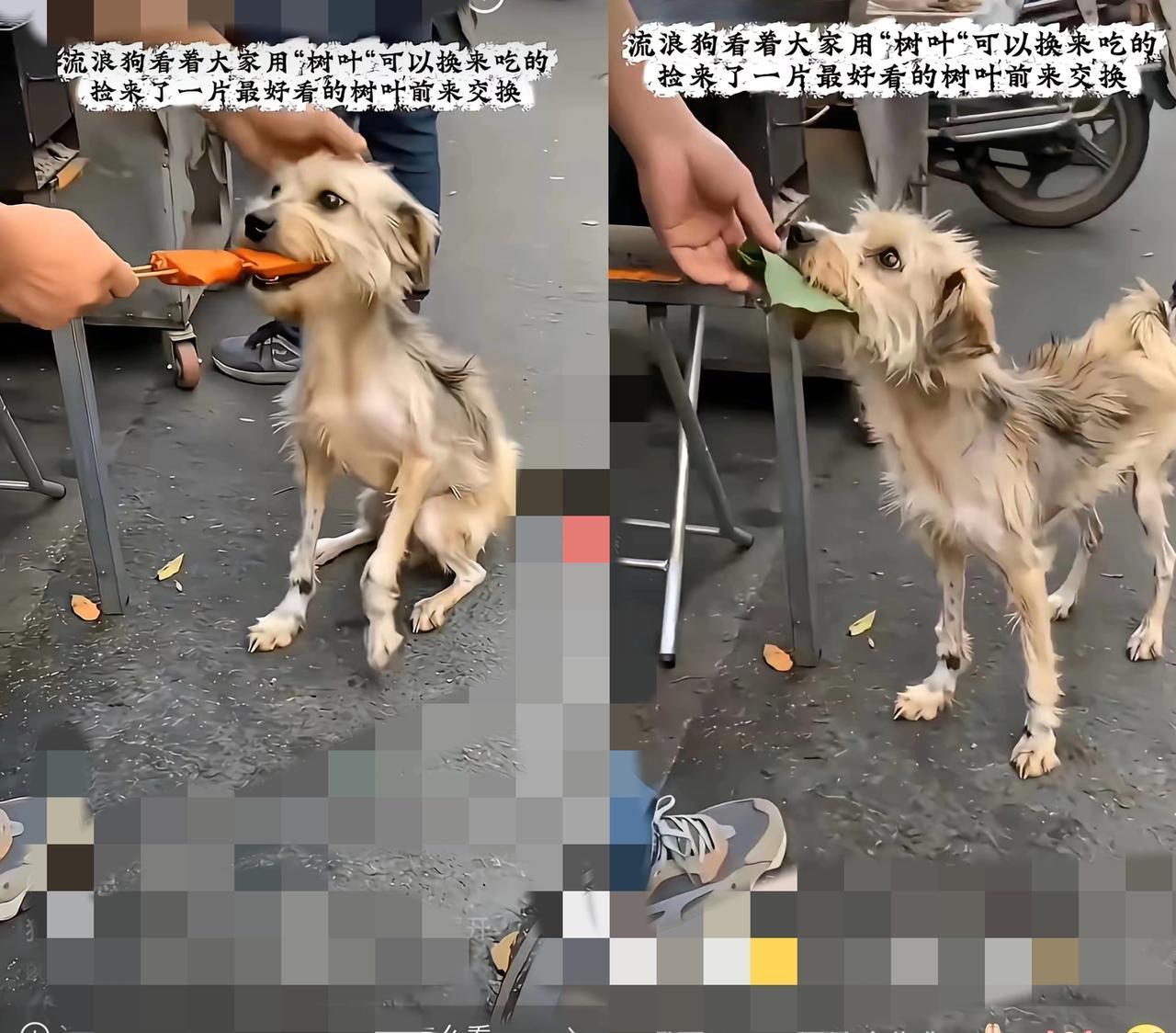 真的被这只小狗狠狠戳中了!它瘦得皮包骨,却把最干净的善意捧到了人间。 它不懂什么是金钱,只看见大家递上纸片就能换到香喷喷的食物,于是认真挑了一片最漂亮的树叶,当成自己全部的“钱”,小心翼翼递给老板。 这不是乞讨,是小狗用最纯粹的方式,在认真和世界做交换。 最暖的是这位店老板,他没有无视,没有驱赶,而是郑重收下这片树叶,递上一根热乎的肉串。 他收下的不只是叶子,是一只流浪小狗全部的信任与期待。 善良从来都不是惊天动地,而是愿意蹲下身子,读懂弱小者的小心思。 这世上最珍贵的交易,从来不用金钱衡量,一颗真心换一份温暖,就足够治愈所有疲惫。 愿每一个认真生活的小生命都被温柔以待,也祝这位心软的老板生意兴隆,财源广进! 你有没有遇过这样暖心的小事?来评论区聊聊~