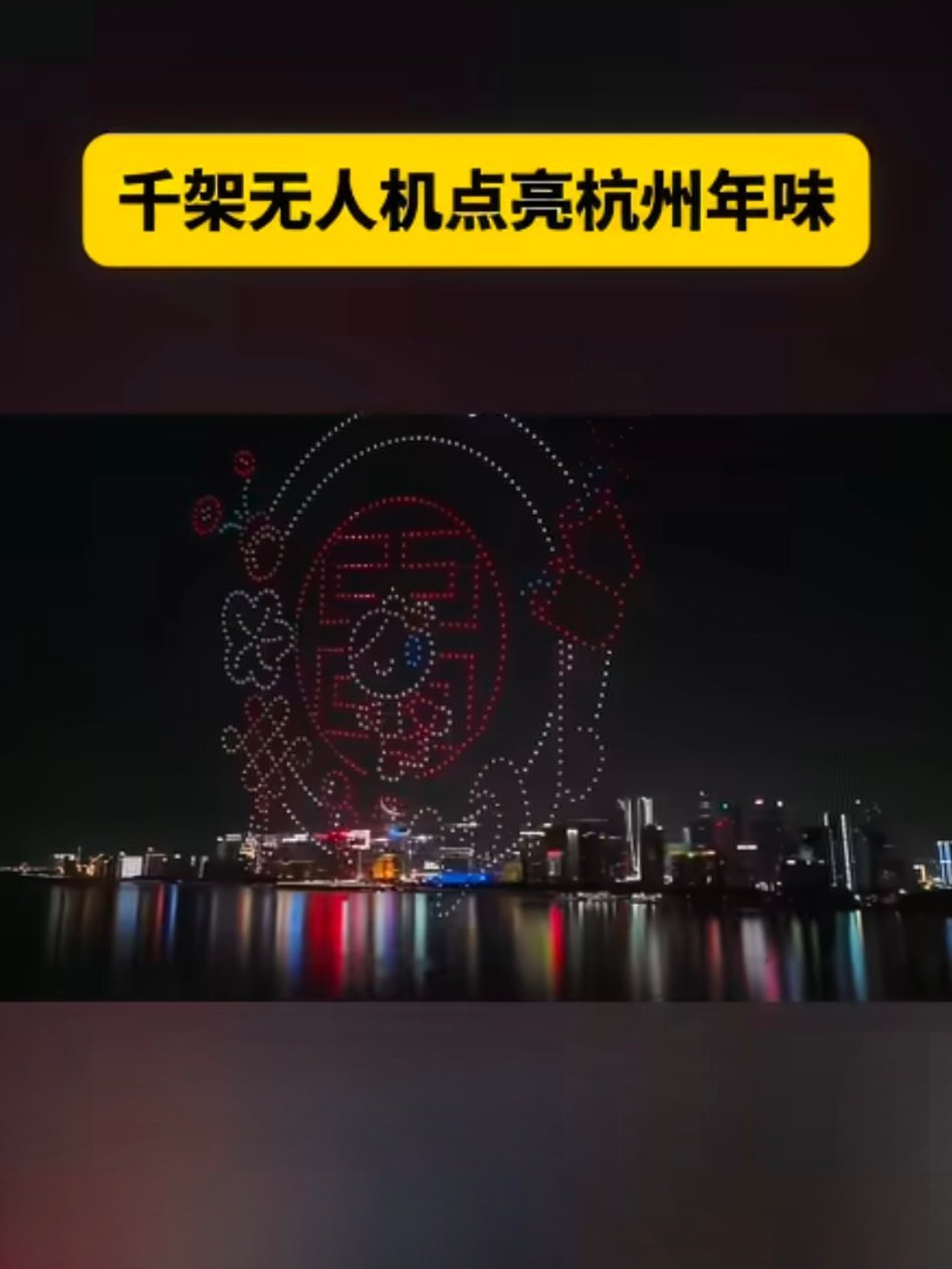 千架无人机点亮杭州年味杭州夜空被千架无人机点亮!灵动编队与绚丽光影交织,新春祝福与城市风采同屏呈现,用科技点亮最浓年味。