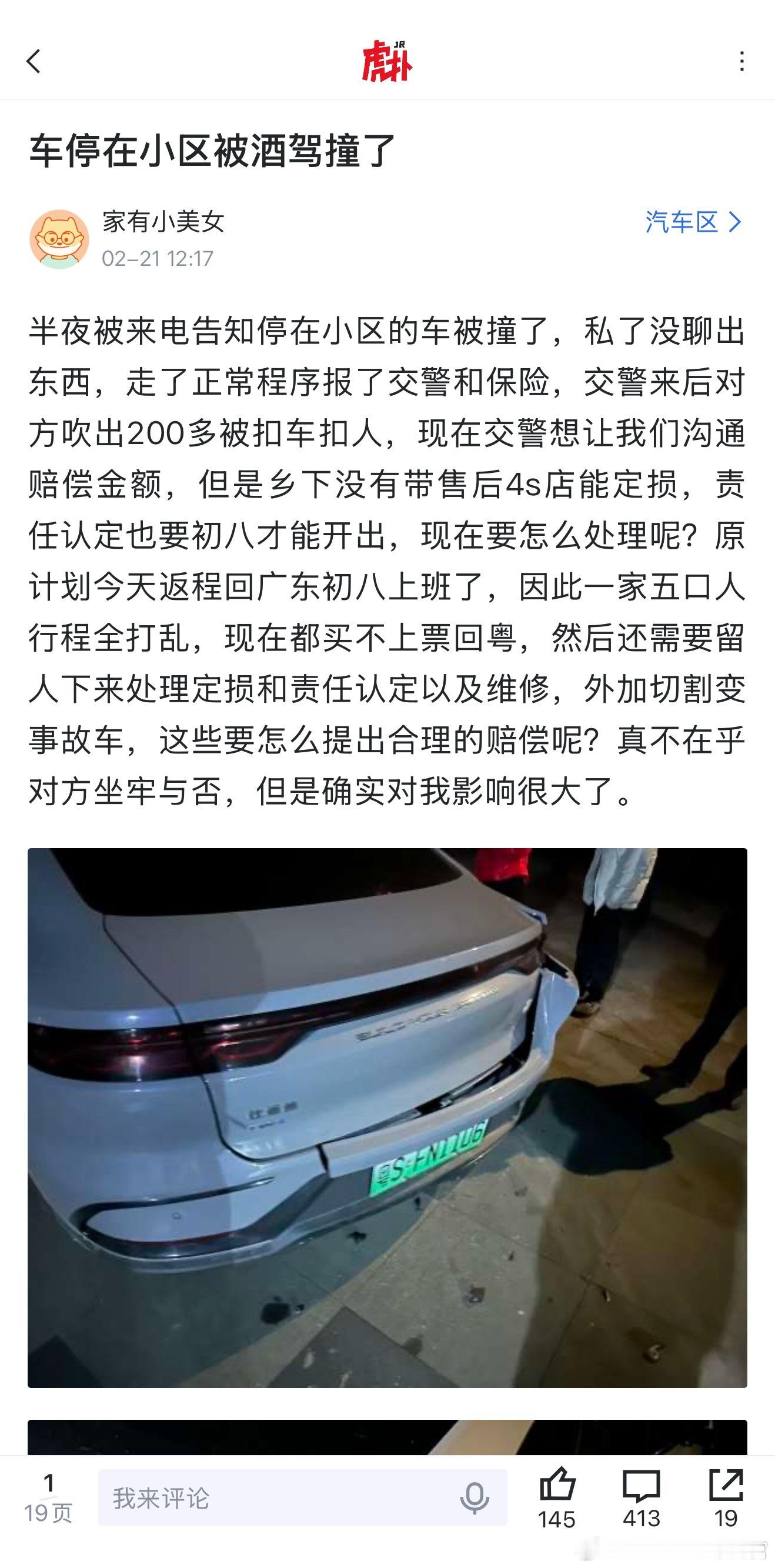 网友停在小区的比亚迪被酒驾撞了,对方竟然只想赔2000你们觉得怎么协商比较合理