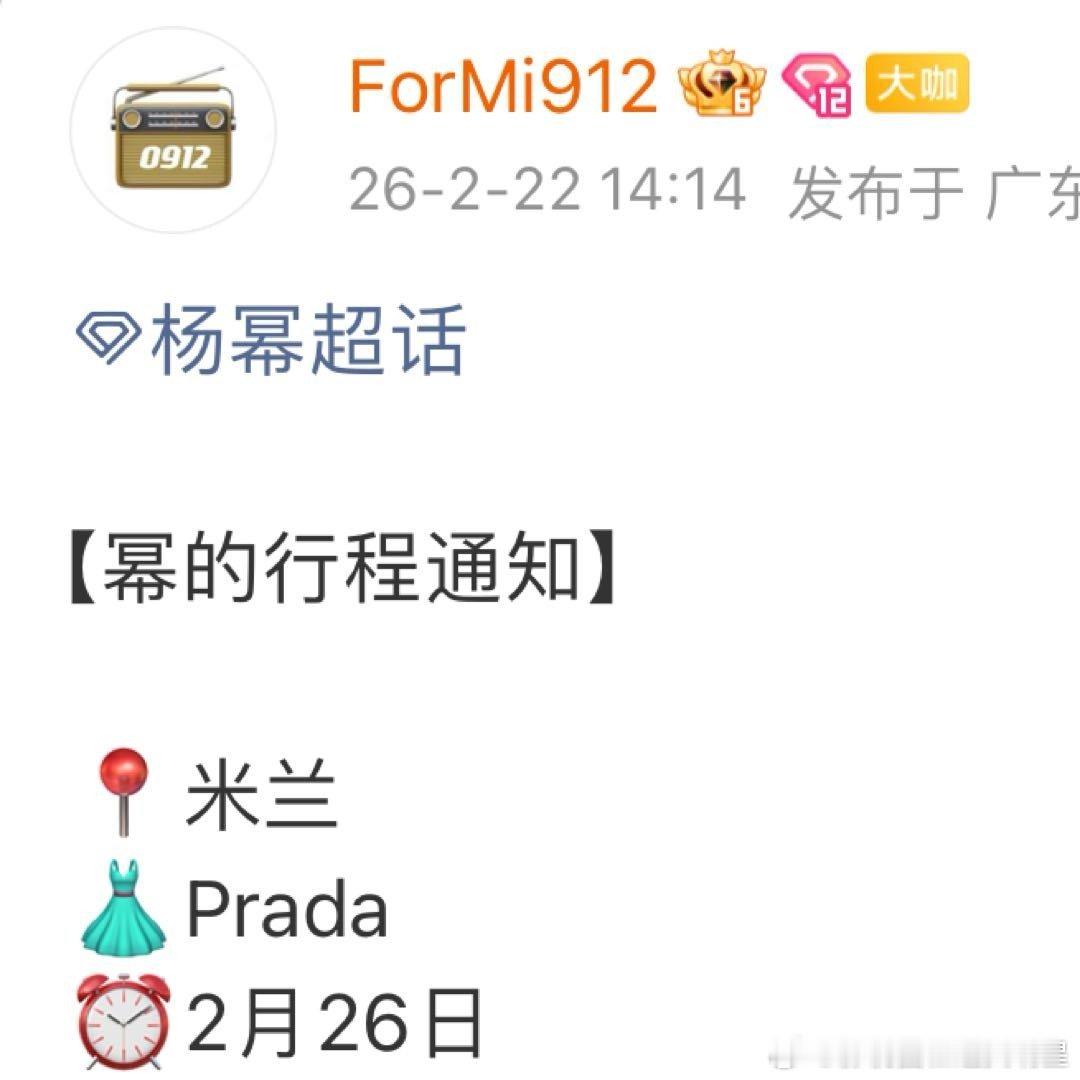 杨幂米兰时装周行程杨幂米兰Prada大秀行程杨幂米兰Prada大秀行程来了,期待