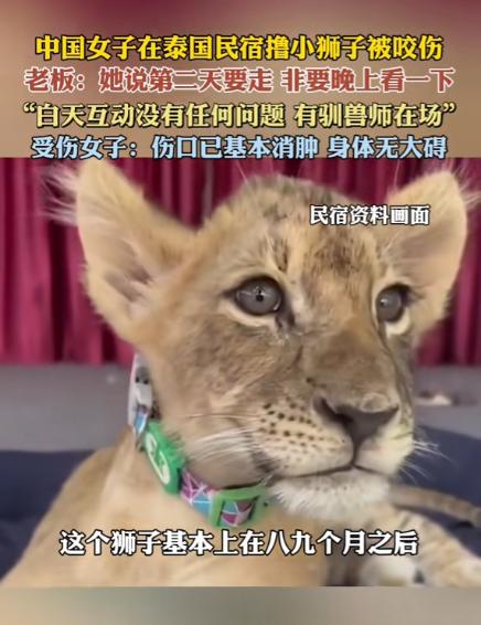 “胆子真大,”近日女子去泰国清迈旅游住在民俗酒店里,临走前一晚,想摸一摸里面饲养的小狮子,老板说晚上不行,白天驯兽师在旁边可以摸,不料女子不依不饶,不料这一摸,小狮子上来就咬了女子的大腿,女子哭着找老板索要赔偿。网友:一个小狮子才几个月大,为难它干啥? 泰国清迈向来是出境游里口碑与热度双高的目的地,温润的季风、慢悠悠的古城节奏、随处可见的特色小吃,再加上近几年社交平台上大火的萌宠互动体验,让无数游客把这里当成放松身心的首选。 当地不少民宿和休闲小店都靠着特色小动物打造打卡亮点,能和幼狮近距离接触的项目,更是凭着软萌的模样圈粉无数,成了很多人奔赴清迈的重要理由。 2025 年,一位中国女游客就带着这样的期待来到清迈,住进了一家养着小狮子的特色民宿,本该圆满收尾的旅程,却在离开前的最后一晚,发生了谁都没料到的意外。 这位女游客的清迈之行已经接近尾声,收拾好行李的她,心里一直惦记着民宿里那只人气超高的小狮子。 这只小狮子才几个月大,浑身毛茸茸的,走路还带着几分笨拙,是民宿里当之无愧的明星,几乎每一位住客都会特意来和它互动拍照。 女游客入住这几天,把时间都花在了逛古城、逛夜市、体验当地风情上,一直没腾出合适的时间和小狮子近距离接触,想到第二天就要启程回国,她不想让这场旅行留下遗憾,便主动找到民宿老板,提出想摸一摸小狮子的请求。 民宿老板听完她的想法,第一时间就明确拒绝,还耐心跟她讲清了缘由。老板说,民宿里的小狮子互动有严格的时间和人员要求,晚上绝对不能让游客单独接触。 小狮子就算年纪小,骨子里还是野生动物的习性,夜里光线暗、环境安静,小动物很容易没有安全感,出现焦躁、应激的反应,贸然接触很容易出危险。 只有白天驯兽师全程在旁边看护,按照固定流程引导,游客才能安全和小狮子互动,这是民宿一直坚守的规则,之前所有白天按规定体验的游客,都没出现过任何问题。 面对老板的反复劝阻,女游客并没有放弃,她一直跟老板沟通,说自己第二天就要走,这次错过之后,不知道什么时候才能再遇到这么小的狮子,一心想在离开前完成这个打卡心愿。 老板看着她态度十分坚决,又想着不想让游客带着遗憾离开,最终还是松了口,同意让她近距离接触这只小狮子。 谁也没料到,意外就在伸手的瞬间发生了,女游客轻轻伸手想去抚摸小狮子的时候,这只看起来温顺的幼崽突然有了本能反应,猛地张口咬在了她的大腿上。 突如其来的疼痛让女游客一下子慌了神,原本轻松的氛围瞬间变得紧张,她又疼又怕,当场就哭了出来,情绪平复后,她立刻找到民宿老板,提出了赔偿的要求。 事情发生后,民宿老板也完整还原了当晚的经过,老板说,自己从一开始就不赞同晚上接触,反复提醒只有白天驯兽师在场才安全,会同意完全是因为女游客说第二天要走,非要晚上看一下、摸一下,不忍心让她失望才破了例。 被咬伤的女游客在及时处理伤口后,身体也很快恢复,她后续表示,自己的伤口已经基本消肿,身体没有其他大碍,状态一直很平稳。 在清迈当地,像这样主打幼狮、幼虎等野生动物互动的体验项目并不少见,从素贴山脚下的度假村,到古城周边的特色民宿,这类靠着幼兽萌点出圈的场所,靠着社交平台的传播,成了网红打卡地。 很多项目都会标注专业看护、温顺亲人,让游客放下顾虑,享受和小动物贴贴的快乐,也让这类互动成了清迈旅游的特色标签。 月龄尚小的猛兽幼崽,就算看起来软萌无害,依旧保留着野生动物的本能,应激反应、自我保护的行为没法完全预判。 白天光线充足、环境稳定,驯兽师熟悉小动物的情绪和习惯,能及时把控节奏、规避风险,夜里光线昏暗,小动物的安全感大幅降低,情绪更容易波动,这也是几乎所有萌宠互动场所,都不开放夜间接触的原因。 近些年出境游越来越方便,越来越多人喜欢走出国门,体验不一样的风景和项目,清迈的幼狮互动只是众多特色体验里的一个。 不管是在国内还是国外,每一个场所的规则都不是无端的限制,而是保障安全、守护体验感的底线。尊重当地的规定,尊重小动物的天性,既是对自己安全负责,也是文明旅行最基本的样子。 旅行的意义是收获快乐、留下美好回忆,而安全永远是享受一切的前提。守住规则、理性体验,不因为一时的执念打破安全边界,才能让每一段旅途都顺顺利利,带着期待出发,载着美好返程,不留遗憾,更不留隐患。 对于这件事,您有什么想说的吗?欢迎评论区留言讨论。 信源:发现大连2025-04-12——《4月11日,有网民发文称自己在泰国清迈一民宿内,遭民宿饲养的狮子咬伤大腿。》