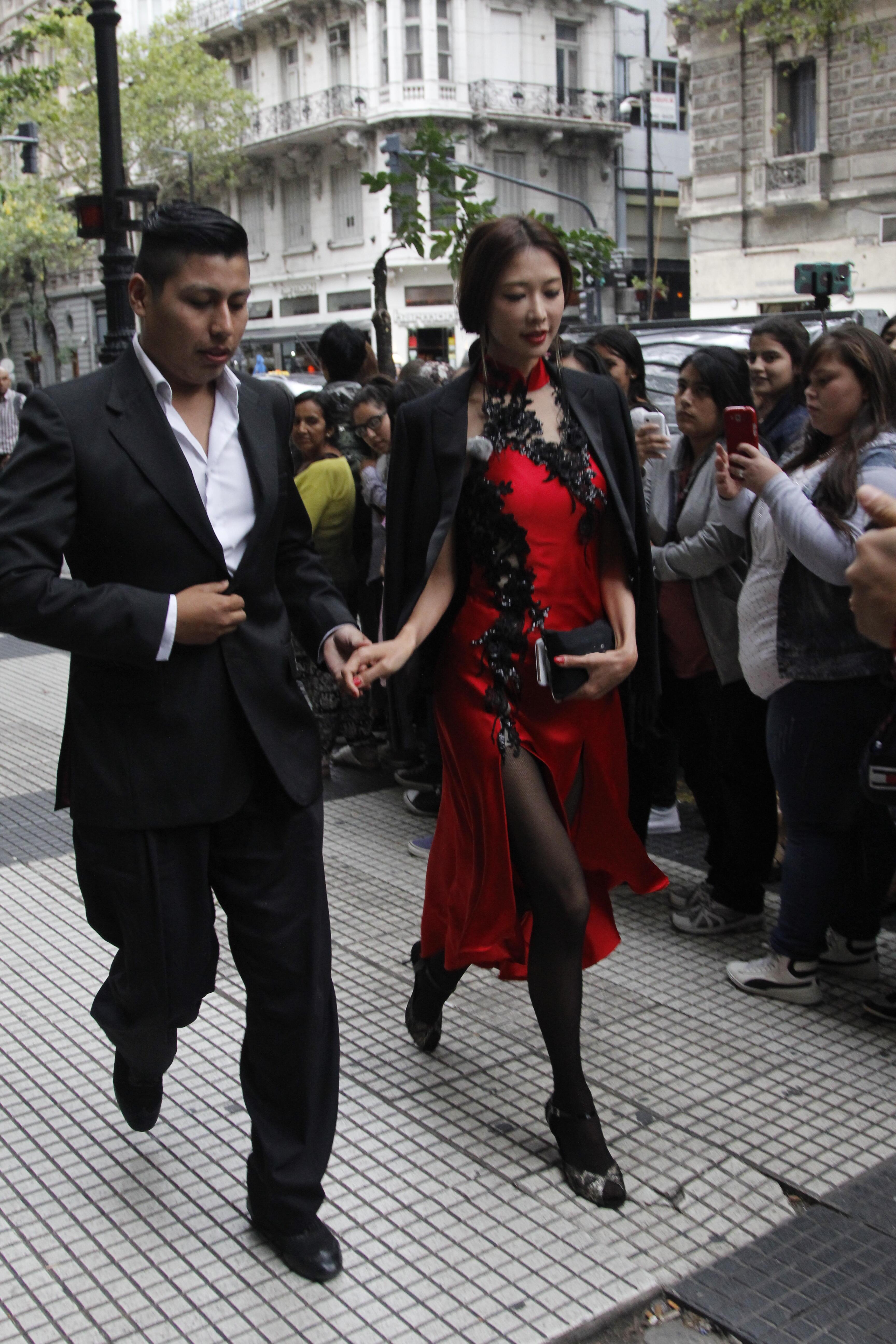 张天爱跟素人合影,胯真的好宽,大宅院似的