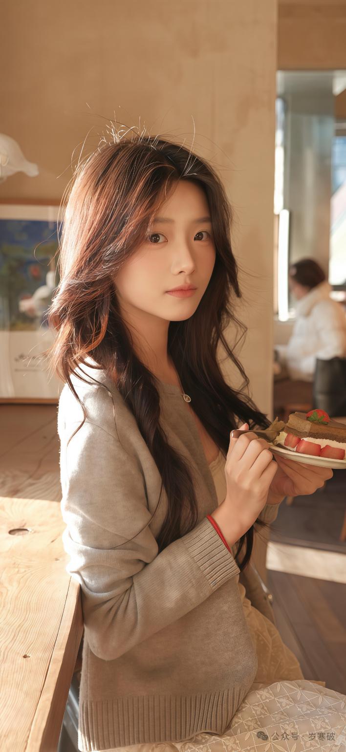 今天街拍图一组,得拿出来单讲。就这张,姑娘往木窗框上一靠,不是那种死靠,是腰