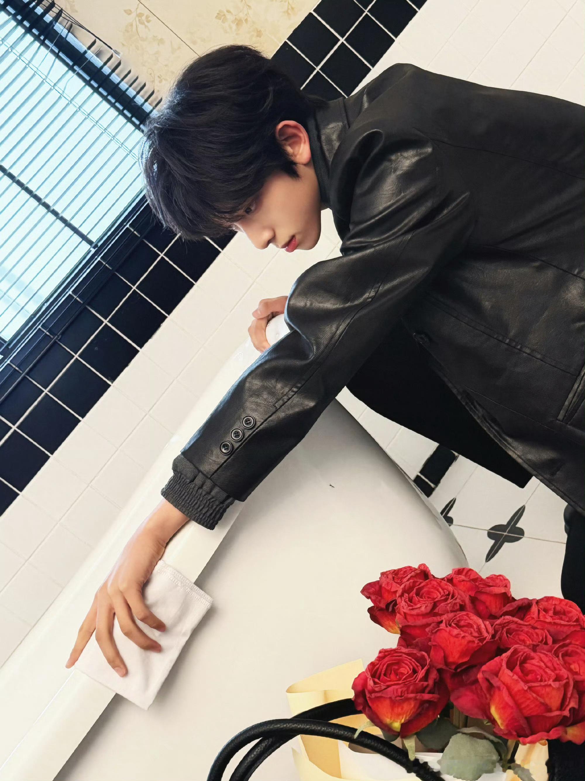 陈浚铭黑皮衣look陈浚铭最新营业🈶浴室黑皮衣look魅魔来的守护这个玫瑰花男