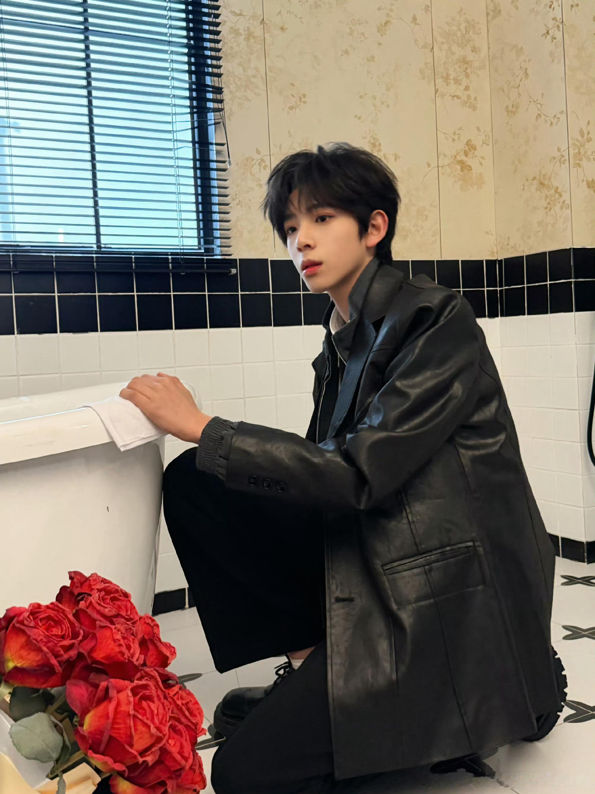 陈浚铭黑皮衣look陈浚铭最新营业🈶浴室黑皮衣look魅魔来的守护这个玫瑰花男孩的括弧笑陈浚铭浴室侧拍