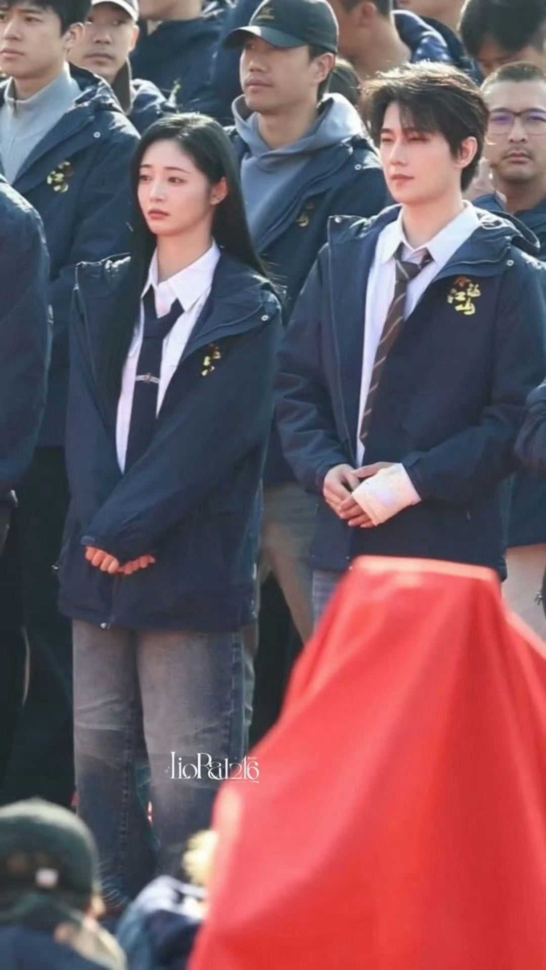 张天爱跟素人合影,胯真的好宽,大宅院似的