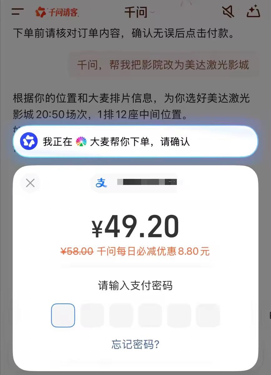 千问这波真是太给力了,值得每个人关注! 前段时间,千问App宣布对春节活动再加码,从2月17日起,所有人用千问下单,每天第一单都能够享受每天首单必减,立减金额最低3.8元起,还能和淘宝、大麦等平台原有优惠叠加。 有一说一,千问这个动作真的很给力了,对于咱们普通老百姓来说,就是一个实打实的利好。 因为很多人通过千问每天首单必减活动,甚至还拿到了8.8元的立减金额。 而且要知道,这个活动是每天都能立减的,每天只要用千问下单,第一单都能随机立减,如果都是8.8元的话,相当于每天都省了一顿早餐钱了。 当然,最让咱们意外的是,千问不但每天立减那么简单,而且因为千问具有强大的办事能力。通过千问购物、点外卖啥的也是非常的方便。 以前咱们买东西,订酒店,买电影票需要在几个App之间来回折腾,现在千问一句话就能把事办了,属实是方便极了!