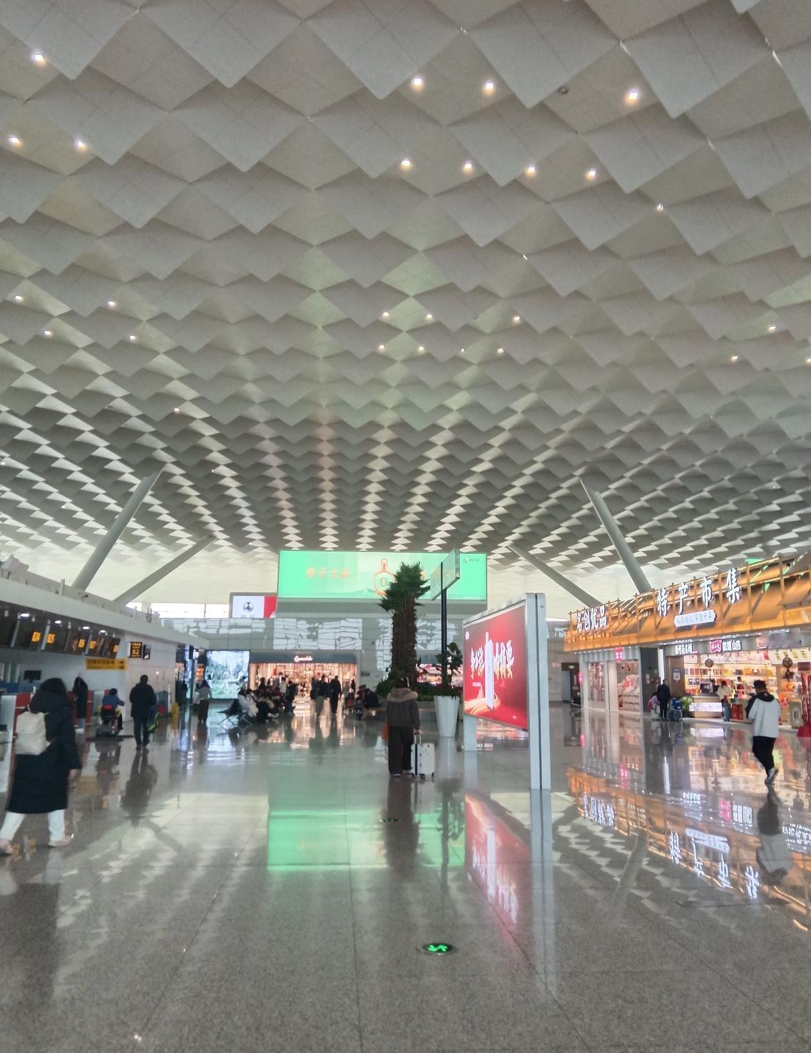 这是在武汉天河机场T3航站楼吧?这“钻石穹顶”的设计真的太有辨识度了,每次来都忍不住抬头多看几眼。 现在是春运返程高峰,机场里人来人往,大家都拖着行李箱,行色匆匆。 有的在特产市集里挑伴手礼,有的在值机柜台前排队,还有的找个地方歇脚,等着登机。 每次在这儿候机,都感觉像在一个巨大的“时空枢纽”里,每个人都有自己的目的地,也都带着各自的故事。 你有没有在机场遇到过什么难忘的小事?或者对哪个机场的设计印象特别深?