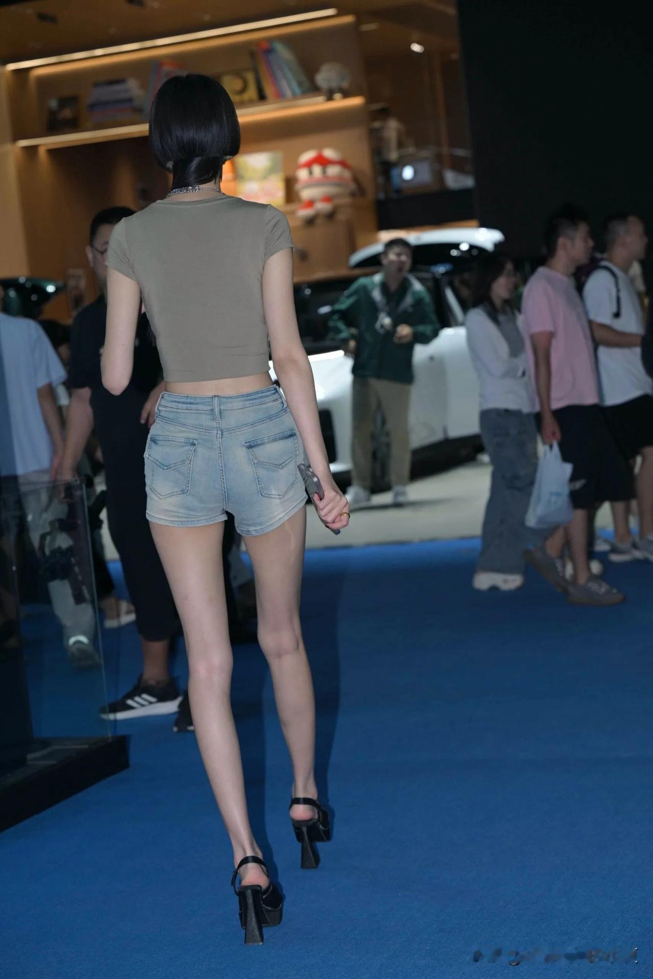 紧身短裤,修长白皙大长腿,181cm的蒲曲太吸睛!短款T恤+热裤,一双长腿直接焊