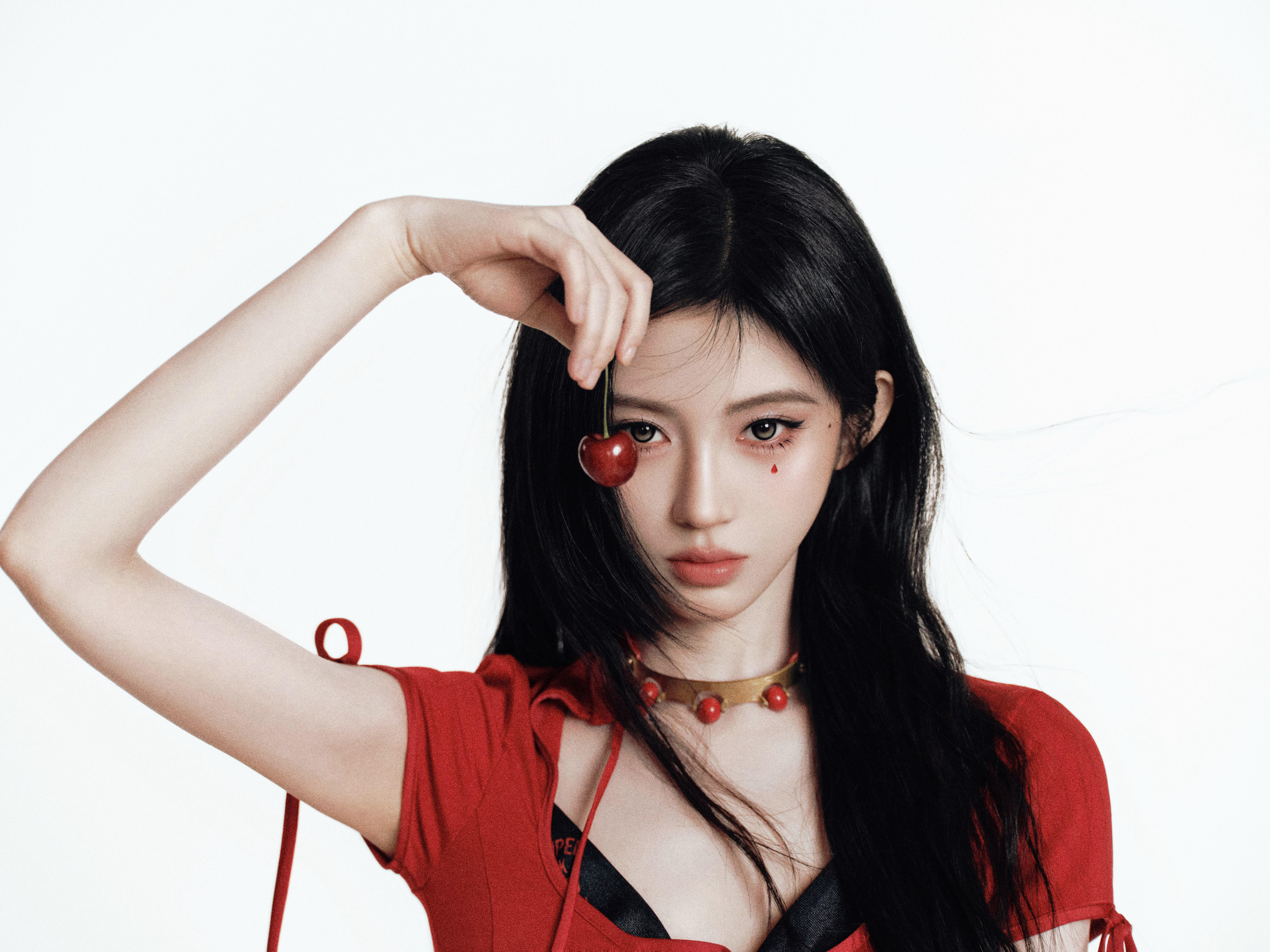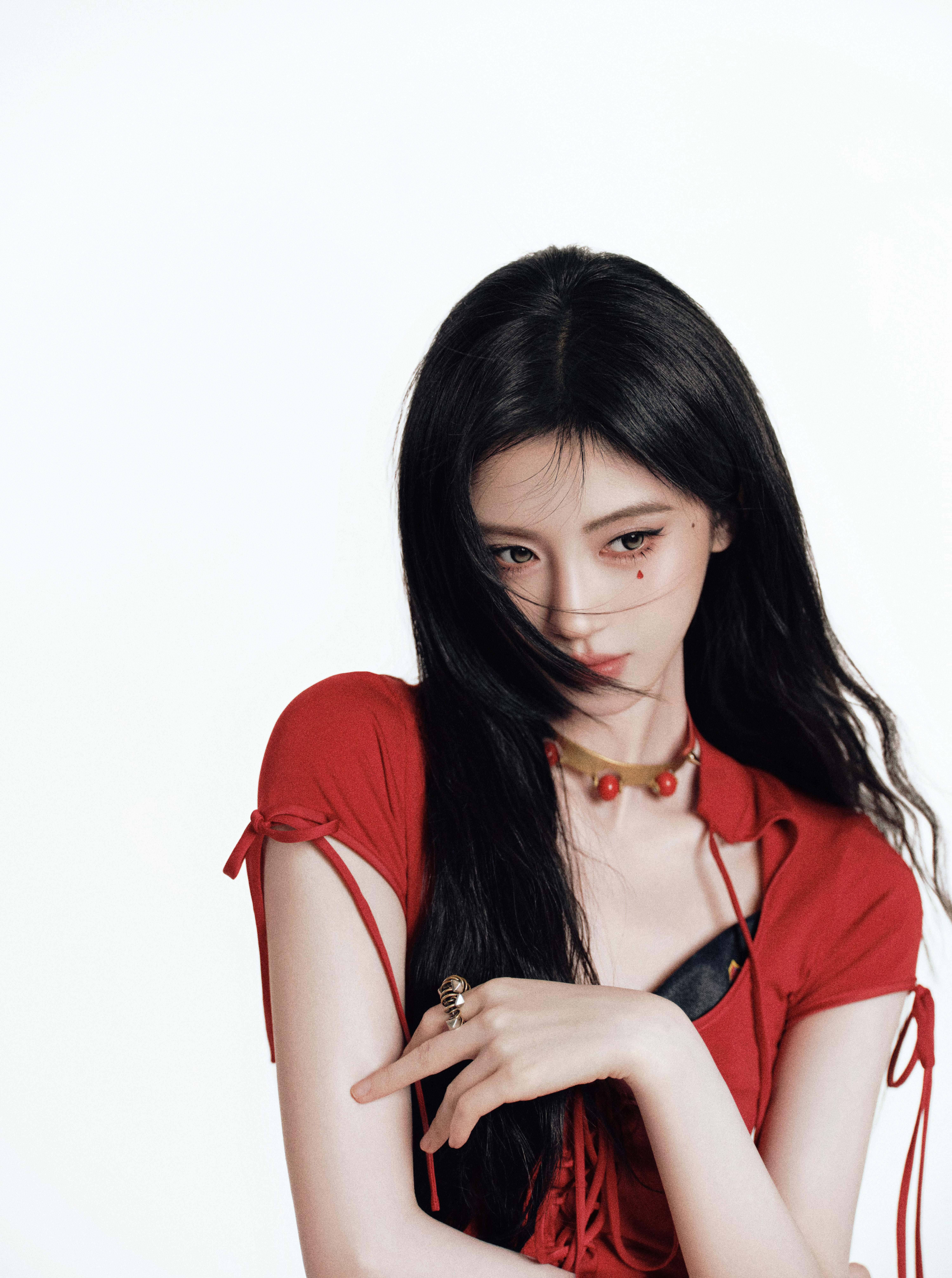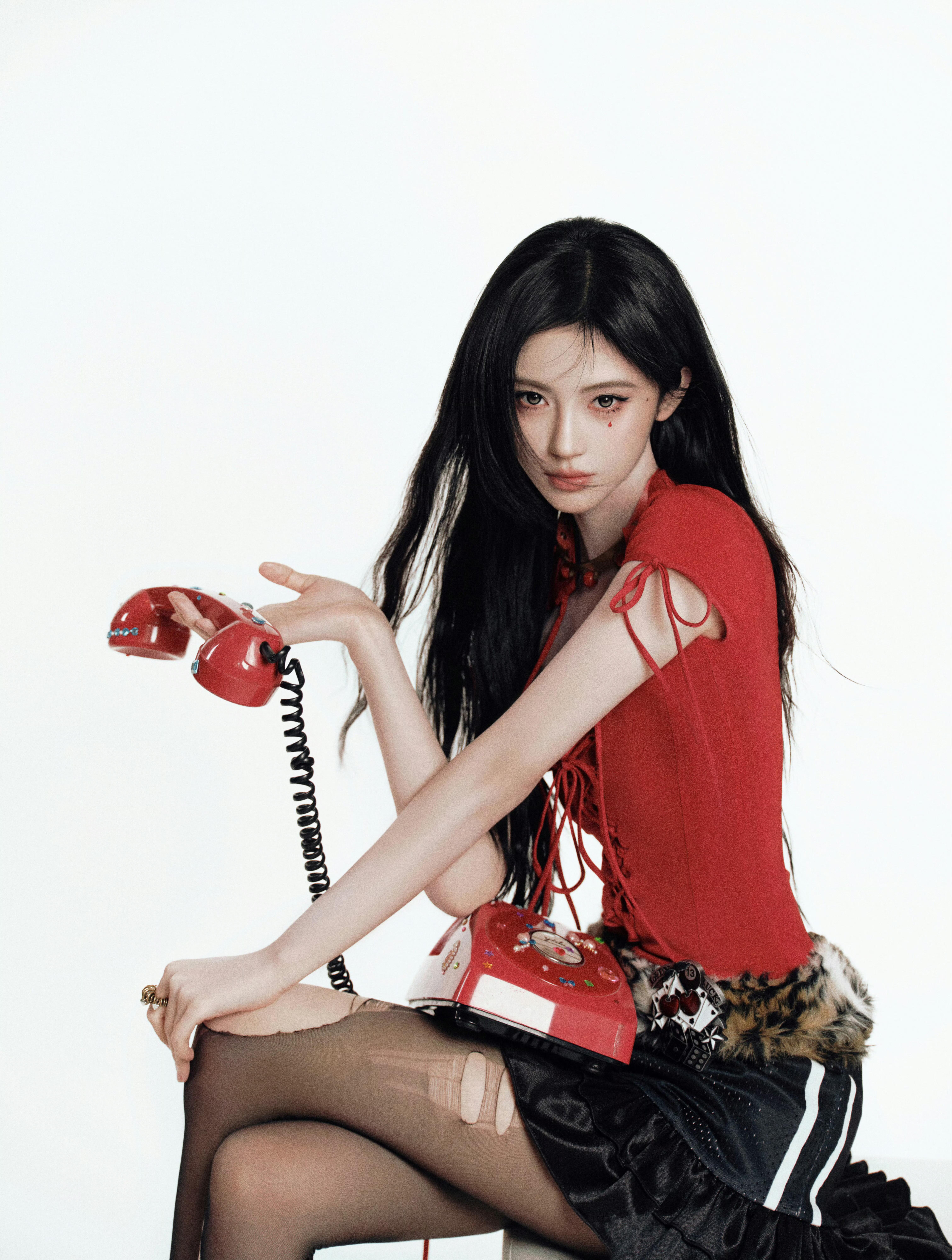 鞠婧祎黑红辣妹装又野又甜:红色系带短上衣来自LSOUL,搭配黑色荷叶边短裙与破洞黑丝,野性十足。腰间是y2k涩谷亚文化毛绒腰带,脚踩CL路铂廷红玫瑰高跟鞋,再配上keimfleck铆钉项圈与TRINITE X YANXUE发圈,复古又性感,把甜酷辣妹风拿捏得恰到好处。