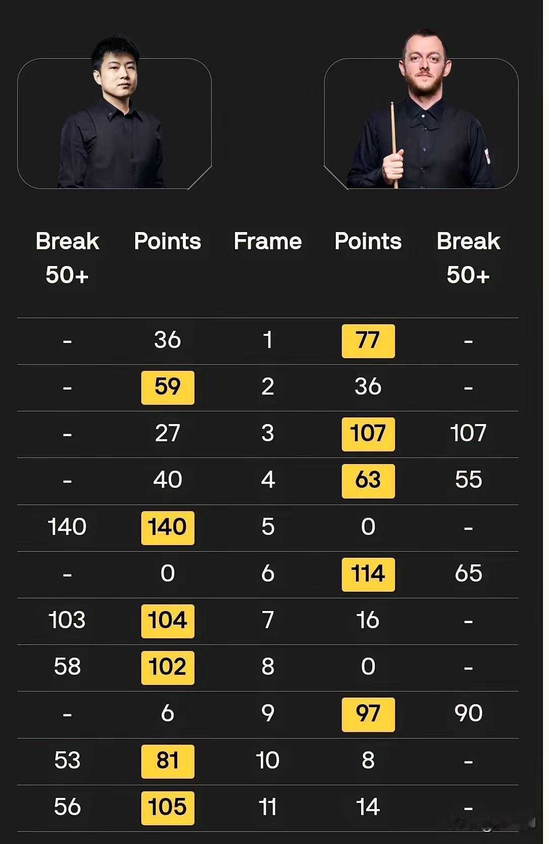 恭喜赵心童背靠背挺进决赛!小特不太争气没能和赵公子会师决赛,但是两场半决赛都是极度精彩,都鏖战至决胜局才分出胜负。巫师和赵心童都展现出强大心脏,关键球上真不含糊,都是咬着牙拿下比赛。 喜欢赵心童的比赛风格和气质,能够给对手造成足够的心理压力,逼对手出错留给自己机会,这是赵与其他选手的最大区别!赵心童加油!! 艾伦的既定策略就是不打冒险球,打到4:2的结果验证了他的策略正确,他也就一直贯彻下去,但是面对赵公子的大心脏与准度,直到落败也是糊里糊涂。🤦 恭喜赵公子进军决赛!整场比赛赵公子一直在自己的比赛节奏里,敢于亮剑,长台总体上防守兼备,也给艾伦一下机会。艾伦的半台制胜很高,赵公子一直处于追赶者。长台象一把利剑,直接打乱了艾伦节奏,而且客观上运气也相对哇噻,即使长台进攻不进,给的机会也不是太多,给艾伦的防守带来巨大压力。 恭喜赵心童反败为胜灭了艾伦进入决赛,赵真的拥有一颗无比强大的心脏👍期待他那决赛100%的胜率。🫰 狭路相逢勇者胜,在压力下始终稳定发挥,一股锐气把对手压下去了。赵公子有望创造决赛奇迹,100%决赛胜率,期待赵公子稳扎稳打,打蒙老张,勇夺桂冠。 艾伦明显是被赵心童长台准度打怕了……那杆黑球不算难度球,只能说是很关键。 小特是玻璃心要是心理素质有赛大师6层不至于这样,决胜局上手44分了 简单球打那么偏。😂 如果今天艾伦碰上别的选手艾伦肯定能胜、因为艾伦的机会太多了、但艾伦内心非常恐惧赵心童没有难度的球艾伦还是不敢攻、见到赵心童艾伦背上了阴影。 所以,丁俊晖总是败给一些菜鸟或实力不如他的选手,就是因为给对手的压力太小致使对手超水平发挥。