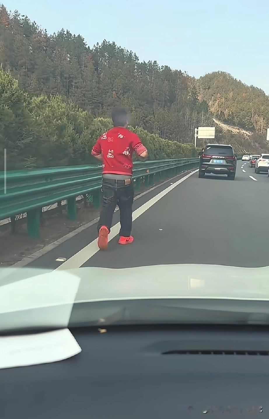 高速堵车大哥跑步裤子都快掉了! 高速堵车的视频,直接给我笑不活了。 前面堵得一动不动,一位大哥穿着红毛衣、踩着红鞋,在应急车道上慢跑减肥。更绝的是,他的裤子松得快掉下来,只能一边跑一边用手提着,那画面又好笑又心酸。 评论区全是神评:“跑步真的能减肥,你看瘦的裤子都掉了”“全靠那颗钉子挂着,不然早就掉了”,还有人调侃:“哥!买得起马年的战衣,不差那绑裤头的带子!” 说实话,高速堵车确实难熬,但像大哥这样苦中作乐,还不忘健身,也是一种境界。不过也提醒大伙:高速上跑步太危险,千万别模仿,安全第一。 你在高速堵车时都干过啥奇葩事?评论区聊聊,让我开开眼👇