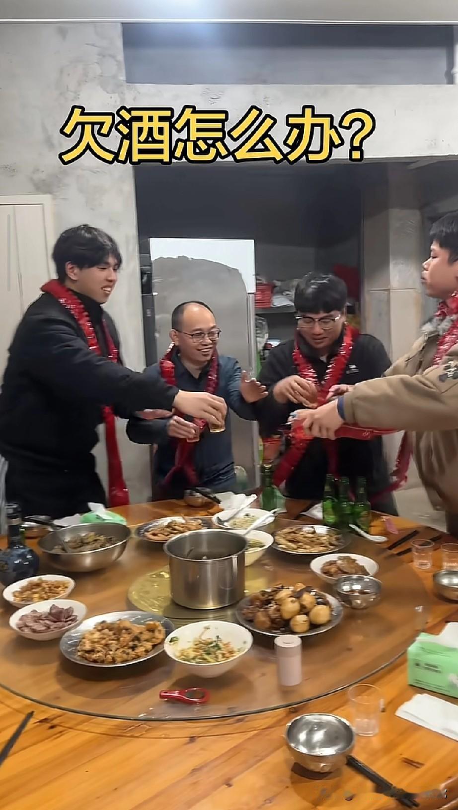 欠酒怎么办?这操作直接把我看傻了 福建网友说的对,喝多了真的点着了怎么办?广东网友也吐槽:戴眼镜的养鱼了,这都不点。广西网友更绝:拿条链锁腿,一个都别想跑! 昨天刷到个酒局视频,直接刷新我对“欠酒”的认知。四个大男人围桌吃饭,其中一个兄弟欠了酒,另外三个直接掏出红鞭炮,往他脖子上一挂,点着了就往他手里塞酒杯:“欠的酒,今天必须还!” 那场面,鞭炮噼里啪啦响,酒杯哐哐往嘴里怼,戴眼镜的兄弟吓得连退三步,愣是不敢接酒。旁边人还在起哄:“跑什么?欠酒不还,鞭炮都替你着急!” 现在的酒局都这么硬核了吗?以前是“不喝不给面子”,现在直接升级成“不喝就炸你”。虽说图一乐,但也提醒大伙:酒桌玩笑归玩笑,安全第一,别真把玩笑开成了危险。 你身边有这种硬核酒局吗?评论区聊聊,让我开开眼👇