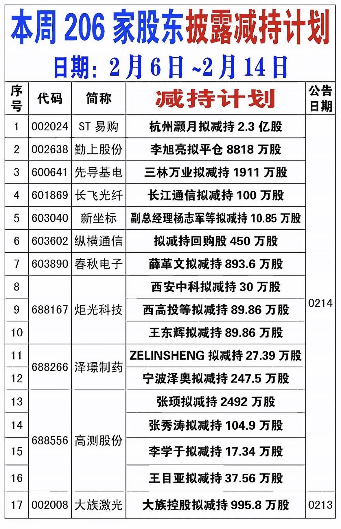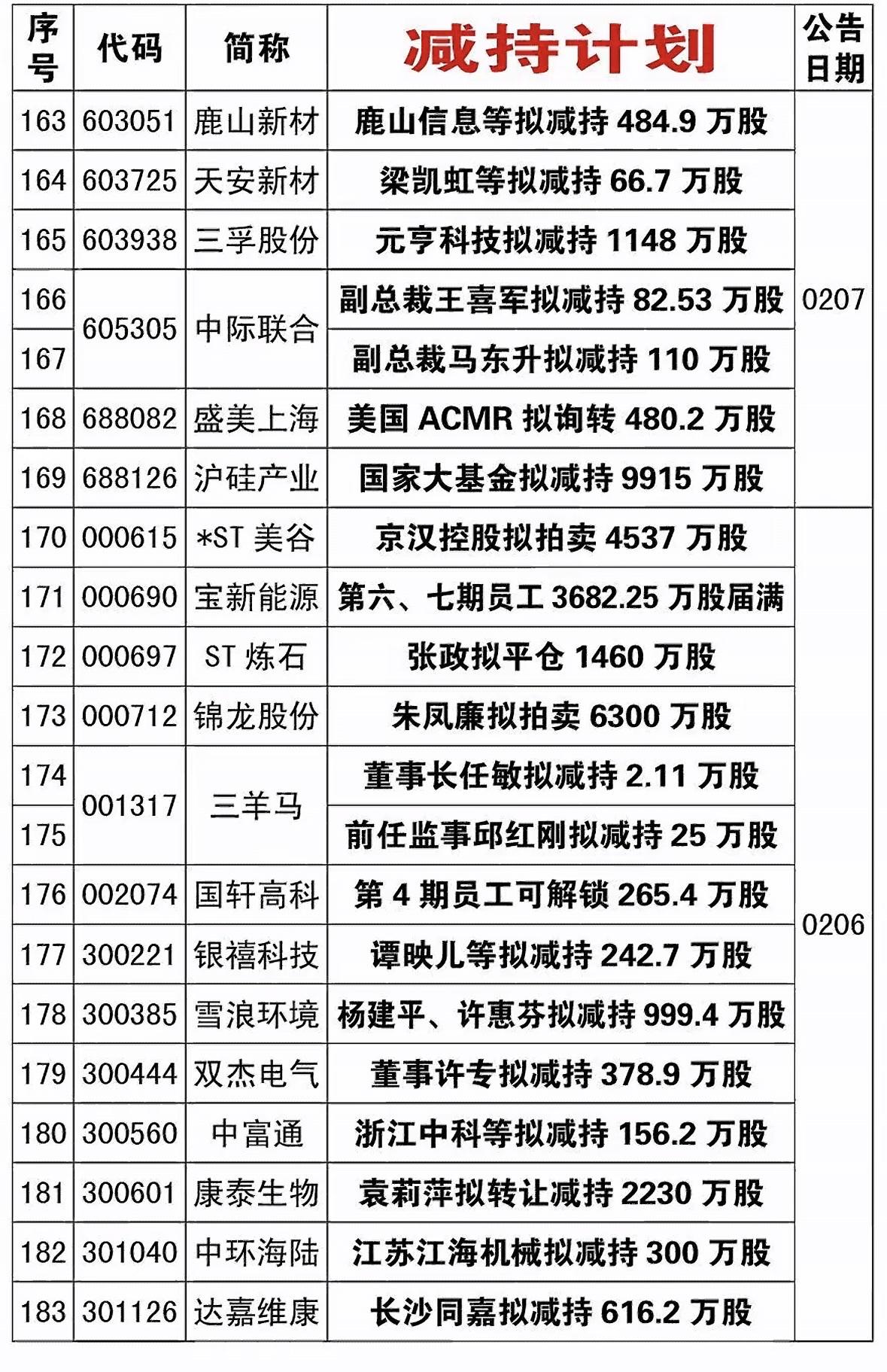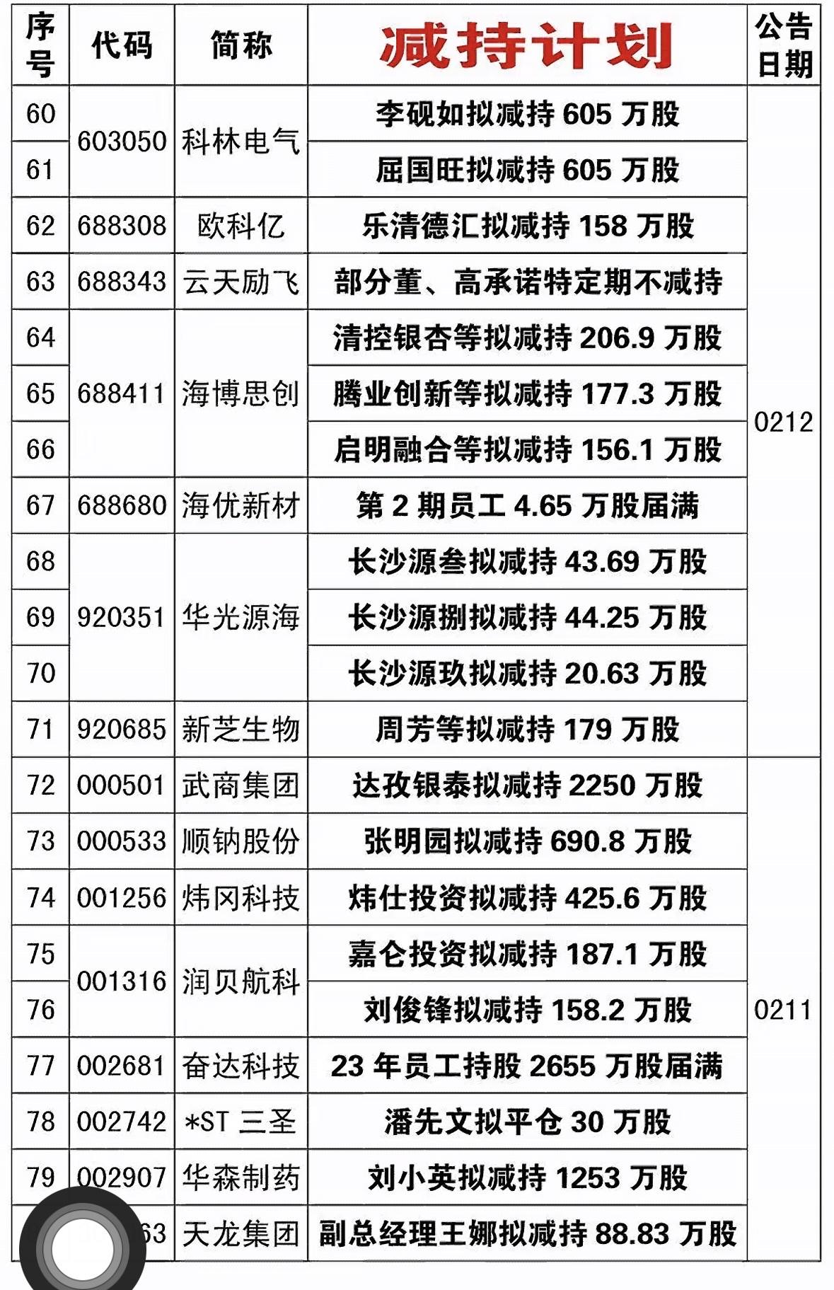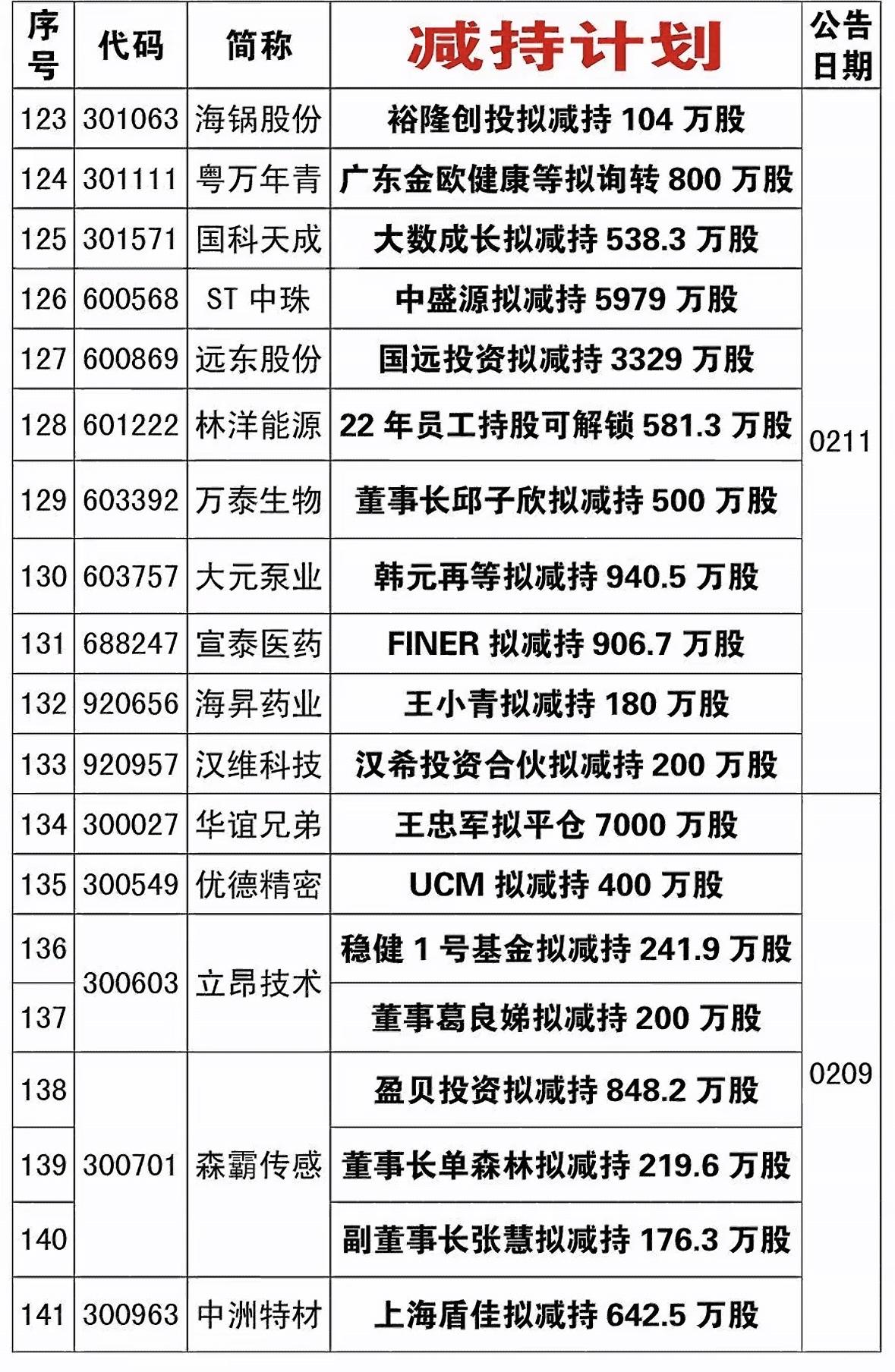 最近市场里减持计划公司还挺多。就3月3日,4家公司发布股东减持计划。像雪浪环境,两大股东要通过集中竞价或大宗交易,减持不超999.43万股,占总股本3%。深水规院的深圳水规院投资,也打算减持不超514.8万股,占比3%。成都先导的三名股东都有减持意向,比例从0.5%到1.2%不等。君禾股份董监高也有减持动作。 股东减持往往会影响市场对公司的信心,投资者看到减持计划,可能就会犹豫要不要继续持有该公司股票。这也提醒咱们,投资时得留意公司的这些动态。