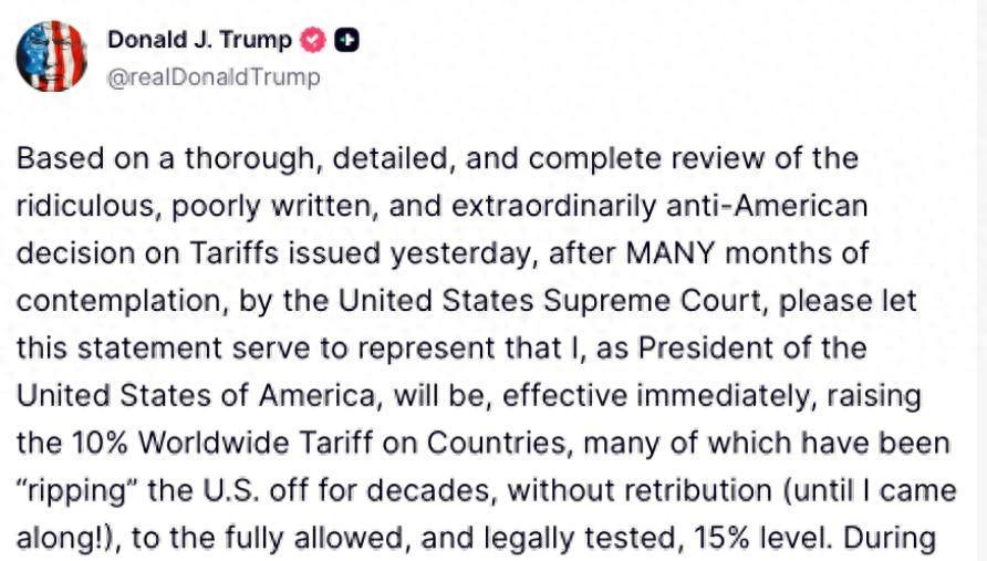 特朗普关税战彻底败北,制裁到帮了忙,竟让中国科技自立自强、经济逆势升级催化剂 美国最高法院一纸判决,给特朗普的关税政策致命一击,也让外界看清这场持续数年贸易战本质:看似针对中国的极限施压,到头来不仅在经济上一败涂地,还接连遭遇制度性挫败,更意外成中国科技自立自强、经济逆势升级的“催化剂”,倒逼中国在核心技术领域跑出加速度。 这场关税战的失败,首先体现在制度层面的彻底落空。2026年2月20日,美国最高法院以6:3的票数裁定,特朗普依靠《国际紧急经济权力法》征收的全球一揽子关税缺乏法律依据,从一开始就是无效的。要知道,这部法律本是用来应对恐怖主义、核扩散等紧急状态的,特朗普却把它当成加征关税的“万能钥匙”,试图绕开国会掌控征税权,这种操作最终被法院判定为越权。判决不仅意味着数千亿美元贸易受影响,美国还可能面临数百亿美元的关税退款,特朗普引以为傲的经济筹码,直接被抽走了核心支柱。即便他扬言要换法律推出新的10%全球关税,也只能走程序更复杂、限制更多的路径,再也无法随心所欲地挥舞关税大棒,这场制度性挫败,让其贸易战的合法性荡然无存。 而从经济实效来看,特朗普的关税手段更是彻头彻尾的失败。他本想通过高关税遏制中国出口、保护美国本土产业,结果却是“搬起石头砸自己的脚”:美国企业被迫承担高额进口成本,物价飙升、供应链紊乱,普通民众为关税买单;反观中国,外贸出口不仅没有被打垮,反而在多元化布局中逆势增长,2024年中国船厂交付船舶吨位占全球53%,中国制造在全球航运、新能源等领域的话语权持续提升。美媒直言“中国得谢谢特朗普”,看似调侃的背后,是对这场关税战适得其反的真实写照——特朗普的封锁,反而让中国彻底断了“靠买技术发展”的念想,一门心思搞自主研发。 事实上,特朗普的层层制裁,早已成为中国科技突破的“反向加速器”。早在2018年美国收紧对华技术出口时,中国就明确提出“关键核心技术要不来、买不来、讨不来”。而特朗普政府加码的芯片禁令、供应链限制,更是把这种紧迫感拉满,倒逼中国在各个核心领域全力攻关,交出了一份亮眼的成绩单。 在芯片领域,美国的出口管制让中国本土芯片产业按下快进键,摩根士丹利数据显示,中国国产图形处理器自给率将从2021年的11%飙升至2027年的82%;工业机器人领域,中国本土制造商市场份额从依赖外资到占据近半壁江山,彻底摆脱了对德日企业的依赖;核电领域,从最初引进西屋电气技术,到如今“华龙一号”完全实现自主研发,不仅掌控了成本和建设节奏,更消除了外部技术卡脖子的风险。 在新能源、人工智能、生物制药等赛道,中国的突破同样令人瞩目:电动汽车企业跻身世界前列,AI初创公司能与美国头部企业同台竞技,生物制药研究不断取得新突破。 成就的背后,离不开中国长期的战略布局,但特朗普的制裁无疑成了“助推器”——它让中国企业意识到,只有把核心技术握在自己手里,才能真正掌握发展的主动权。如今的中国,不仅在制造业领域实现了从跟跑到并跑、部分领跑的转变,还建立起了庞大的能源、金属储备,人民币跨境使用范围持续扩大,在应对外部风险时,有了更坚实的底气。 特朗普的关税战,本质上是用单边主义对抗经济全球化,用技术封锁遏制发展中国家的进步,但其结果却印证了一个道理:真正的核心技术,从来不是靠打压就能封锁的,反而会在压力下催生更强大的创新动力。美国最高法院的判决,宣告了特朗普关税手段的制度性破产;而中国在科技和经济领域的全面突破,则证明了这场贸易战的经济性失败。 特朗普即便想换工具继续施压,也早难掩其政策的弊端。中国在这场倒逼中,走出条自主创新、自立自强的发展道路,这不仅是对外部制裁的最好回应,更让中国经济的抗风险能力、科技的核心竞争力实现了质的飞跃。未来,随着中国在核心技术领域的持续突破,那些试图用封锁遏制中国发展的手段,终究只会成为中国不断升级的“垫脚石”。
