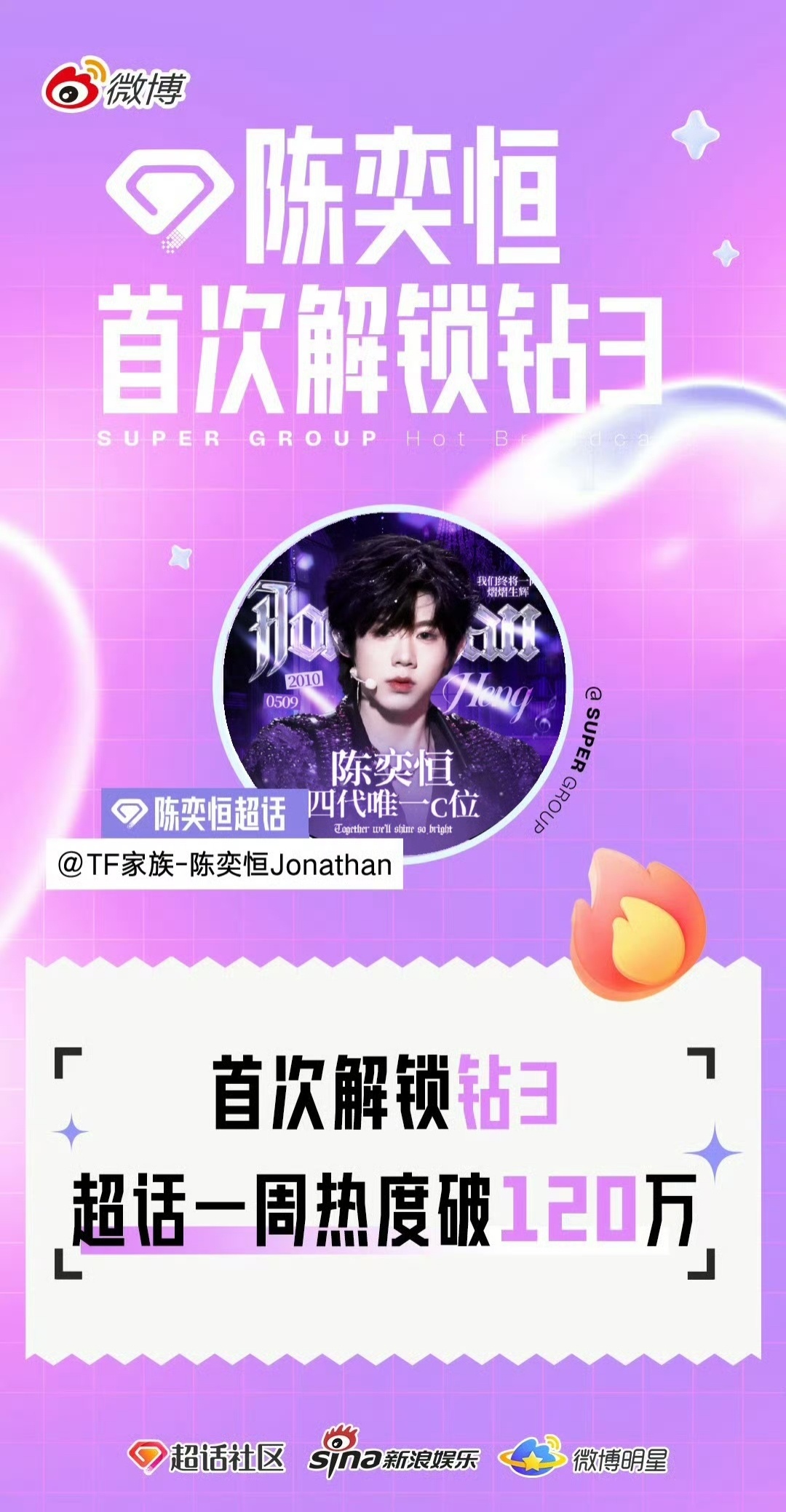 陈奕恒钻三超话恭喜陈奕恒超话达成【钻三】级别💎解锁内娱首个10后钻三超话!TF四代第一且唯一钻三超话!陈奕恒10后首个钻三超话