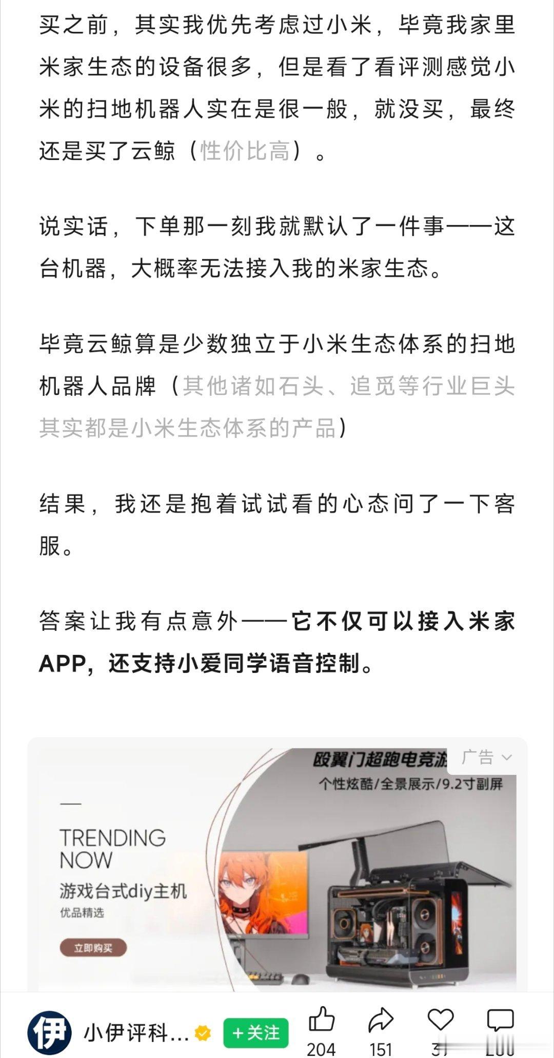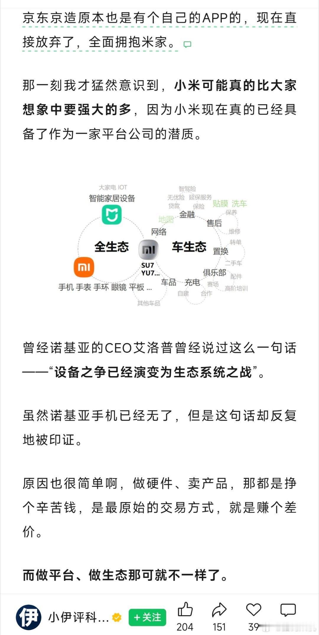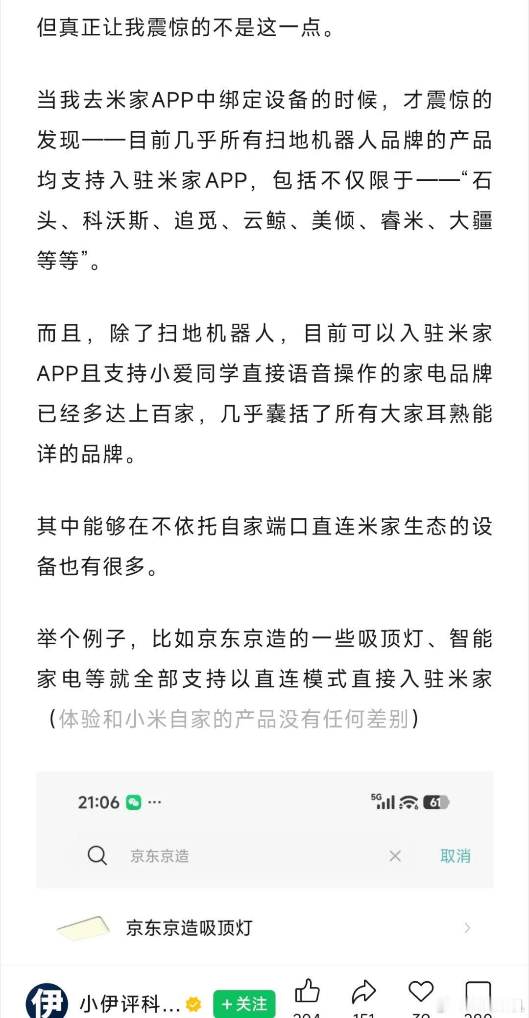作者购买了一款非小米的扫地机,却发现能够接入小米,深入了解后才知道米家已经悄悄覆盖了很多品牌。小米已经默默的构建起来了一套生态,要知道做生态一直都是最难的事情。