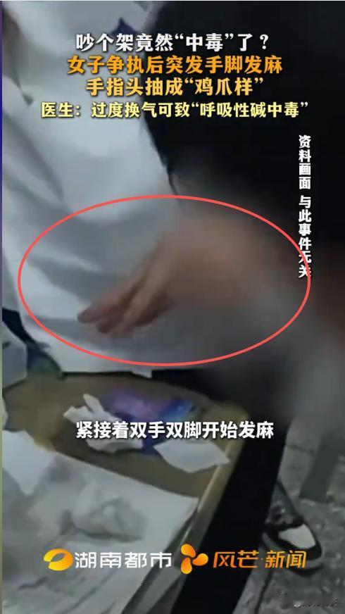“悲剧还是发生了!”近日,一女子因为些家庭琐事与家人发生了激烈争吵,情绪失控后突然出现手脚发麻、手指僵硬抽成“鸡爪样”的症状,被紧急送医后,医生诊断为呼吸性碱中毒,网友:吵个架竟然“中毒”了? 据媒体1月28日报道,刘女士因为点小事与家人意见不一致,说着说着就吵了起来,情绪激动之下,她呼吸变得又快又深,没过多久,她就感觉手脚发麻、僵硬,紧接着手指不受控制地蜷缩起来,形状酷似“鸡爪”,整个人也变得头晕、心慌,家人见状吓坏了,赶紧将她送往医院。 医生检查后表示,刘女士并非传统意义上的“中毒”,而是因争吵时过度换气,导致体内二氧化碳排出过多,引发了呼吸性碱中毒。这种情况会导致血液酸碱度失衡,进而出现手脚麻木、肌肉痉挛、手指抽搐等症状,严重时还可能出现意识模糊、晕厥,若不及时处理,会存在一定危险。 医生提醒,情绪激动时的过度换气,是引发呼吸性碱中毒的常见原因,尤其是女性、情绪敏感人群,更容易出现此类情况。遇到情绪激动、想要吵架时,一定要尽量平复呼吸,避免大口、快速喘气,可以尝试深吸一口气,慢慢吐出。 由此可见,大家在生活中,一定要学会控制情绪,遇到矛盾冷静处理,别让一时的冲动,伤害到自己的身体。 信息来源:《吵个架竟然“中毒”了?女子争执后突发手脚发麻指头抽成“鸡爪样”医生:过度换气可致“呼吸性碱中毒”》风芒新闻