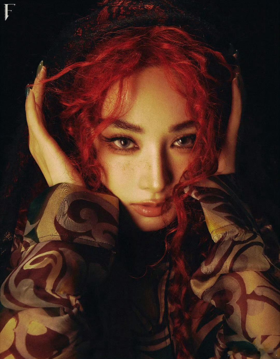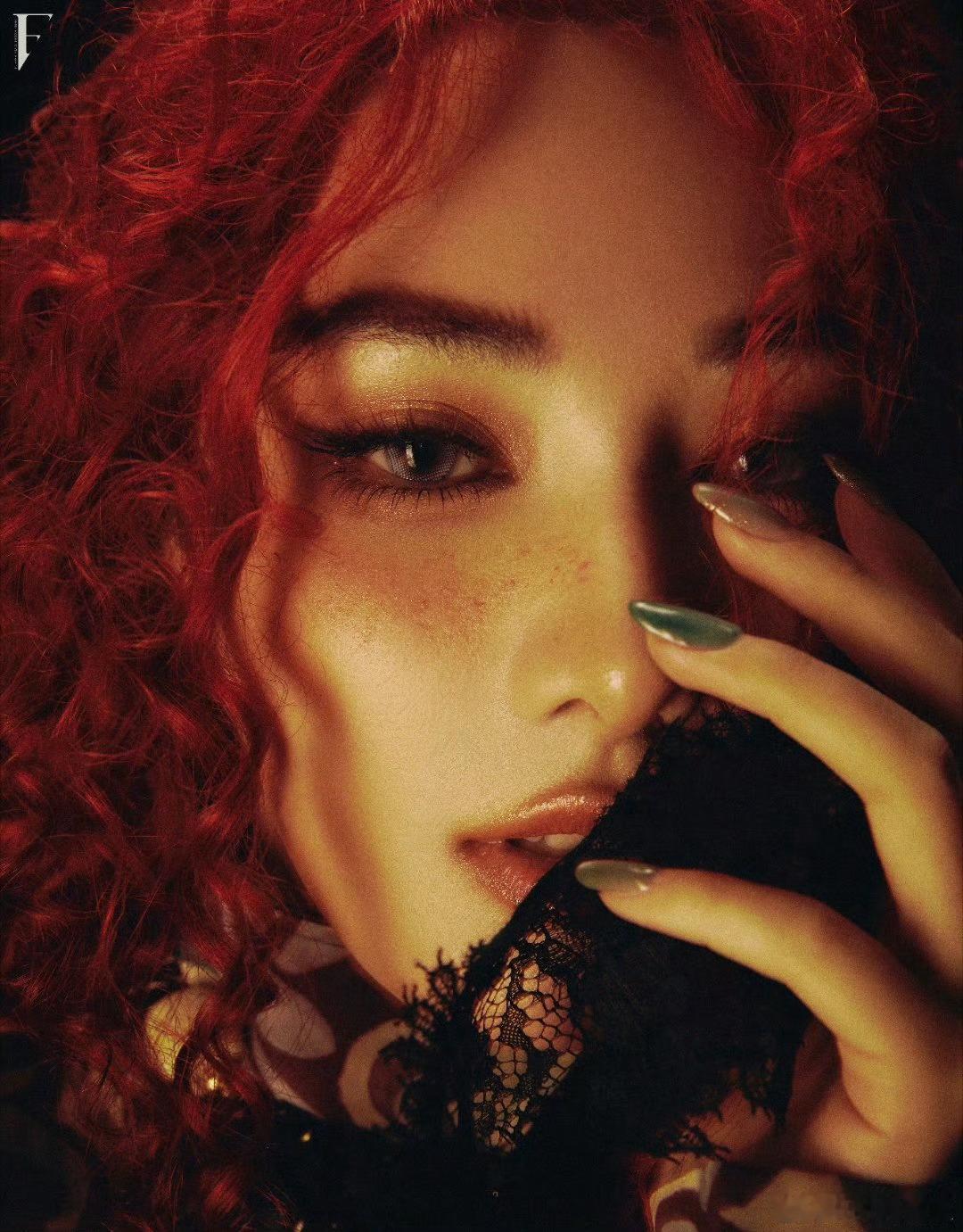 虞书欣新年写真又甜又辣虞书欣新年写真 黑发红装造型亮眼,露肩设计添性感,甜辣氛围