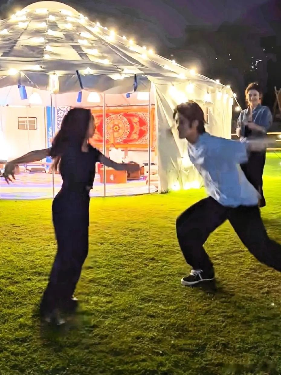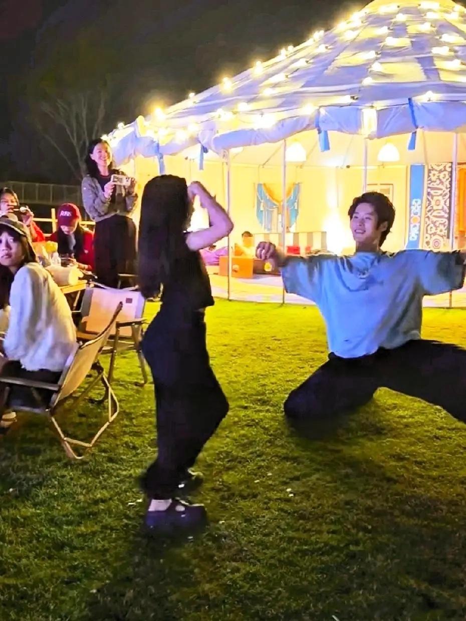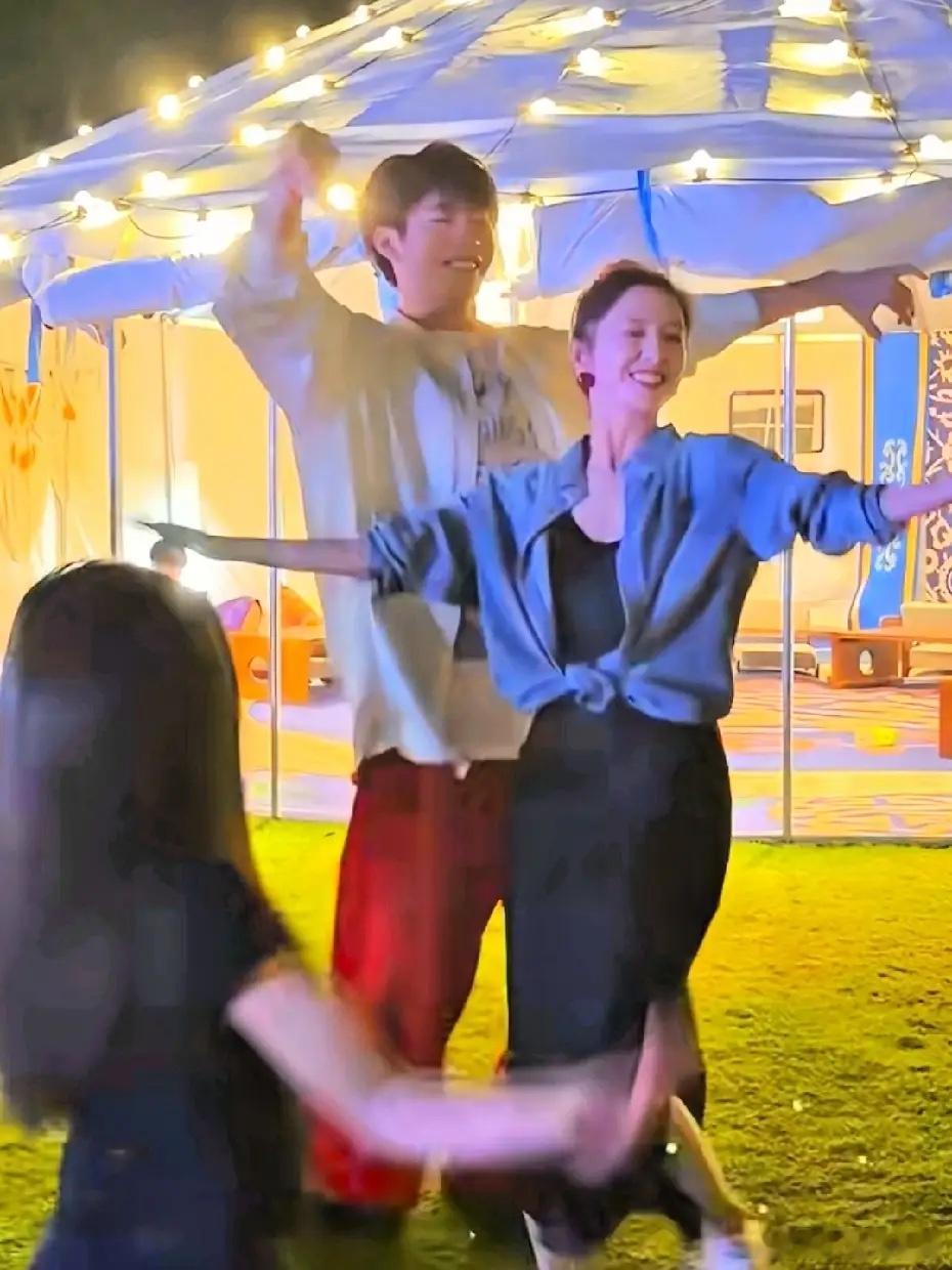 佟丽娅和董璇现身三亚的阿那亚大草坪,小酒窝和朵朵也在!小酒窝也太开朗了吧,和人家跳蒙古舞,气场一点不输,佟丽娅也上场斗舞,感觉她俩真像母女!