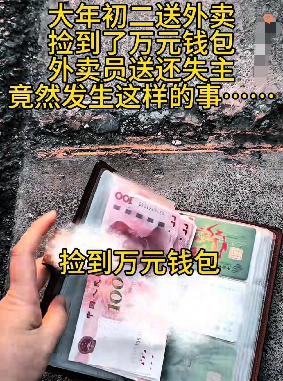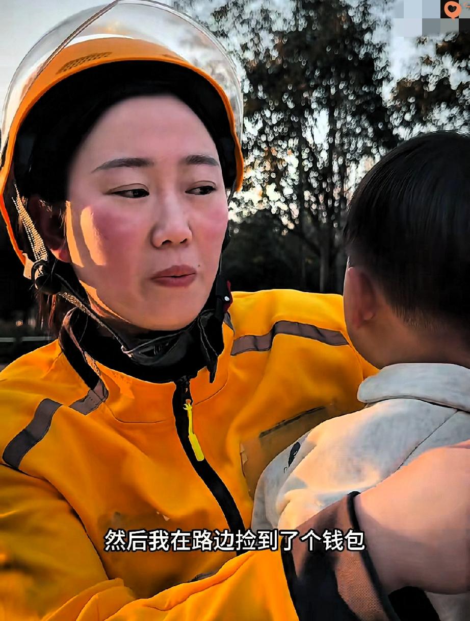 大年初二带娃送外卖的妈妈,捡到万元钱包没贪一分,结局太好哭了! 别人过年阖家团圆,她抱着年幼孩子奔波在送餐路上,生活已经够难了。 可面对装满现金、证件的钱包,她第一时间录视频留证,主动联系失主,还抽空亲自送到家门口。 失主要塞现金感谢,她坚决不收;邀请进屋吃饺子,她怕耽误送餐婉言拒绝。 最后失主端来热饺子、塞给孩子压岁钱,这份双向的体面与善良,比任何礼物都珍贵。 很多人总说人性经不起钱的考验,可这位妈妈用行动告诉我们:穷不丢志,难不昧心,真正的高贵从来不是有钱,而是不管多苦,都守得住良心。 热气腾腾的饺子,暖的不只是胃,更是人心。生活或许不易,但善良永远不会吃亏。 这样平凡又伟大的妈妈,你愿意为她点个赞吗?