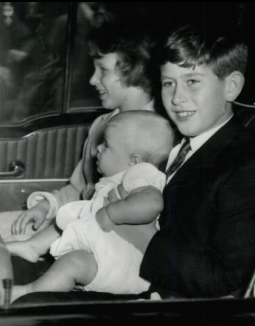 中年查尔斯抱着儿子威廉。 小威廉好奇的小表情,挺机灵; 做了父亲的查尔斯,并不太开心,因为他和老情人卡米拉频繁联系的丑闻,直接影响了他和戴安娜王妃的婚姻,公众对王室的形象大打折扣; 查尔斯的个人私情,也让女王倍感压力。 少年查尔斯抱着胖弟弟安德鲁,和妹妹安妮公主一起乘车去给外婆过生日。那时的查尔斯模样清秀,笑容温和,和弟弟妹妹们过着衣食无忧的生活。 当他继承母亲的王位,成为新任国王后,弟弟安德鲁也搞出和爱波斯坦案有关的丑闻,这几乎颠覆了公众对王室的认知。 老年查尔斯会想,永远做个长不大的孩子,该有多好。
