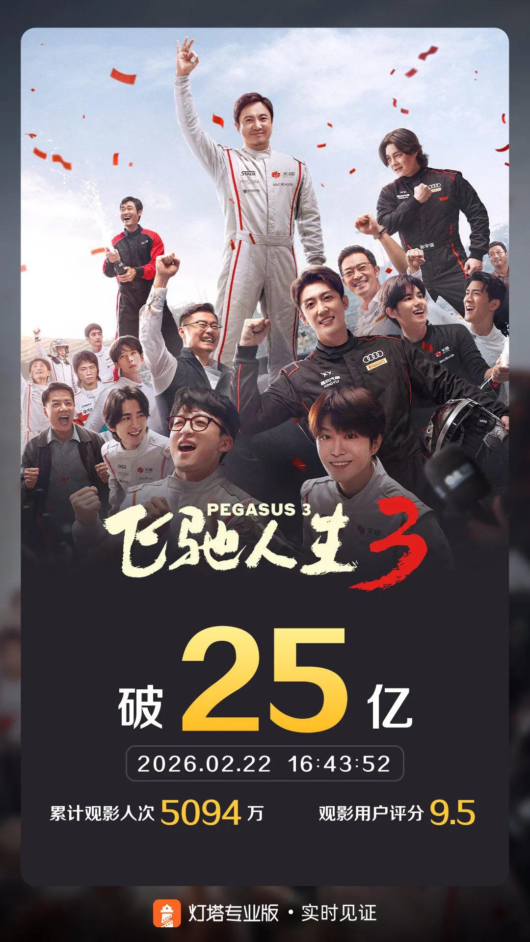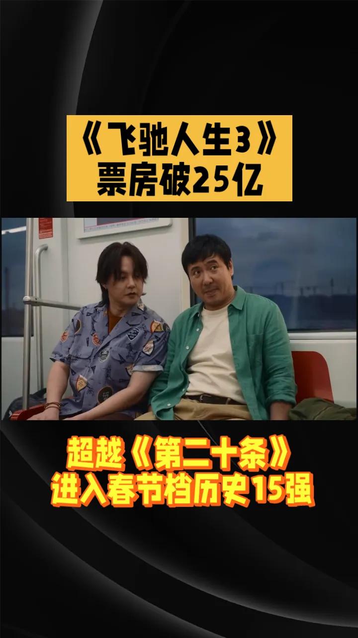 《飞驰人生3》票房破25亿,超越《第二十条》。 由韩寒执导,沈腾、尹正、黄景瑜、张本煜领衔主演,魏翔、沙溢、范丞丞、孙艺洲主演,段奕宏特邀主演,张新成、胡先煦、李治廷、白宇帆、周政杰、高华阳特别出演,贾冰、王安宇、陈永胜、冯绍峰、郝瀚友情出演的喜剧电影《飞驰人生3》累计综合票房破25亿,超越《速度与激情7》、《捉妖记》,进入内地影史票房总榜36强;超越《第二十条》,跻身春节档历史15强。 春节档之争,历来是口碑舆论之争,《飞驰人生3》能够在一片纷争中独善其身,票房一路高歌猛进,自然是付出了不少努力,有时候低调也是一种宣传策略。虽然《飞驰人生3》在各大平台的主页都明确有喜剧标签,但部分影迷却对此极力否认,表示这只是一部赛车电影,不能要求其喜剧效果。